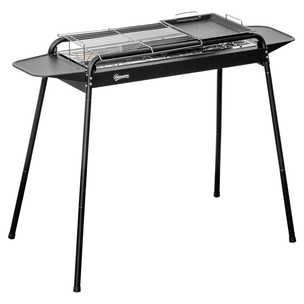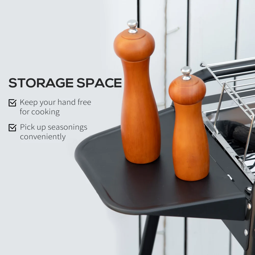 Outsunny Μπάρμπεκιου κάρβουνο με σχάρα και ατσάλινο πιάτο με πλαϊνά ράφια, 113x59x83,5cm, Μαύρο 846-110V00BK
