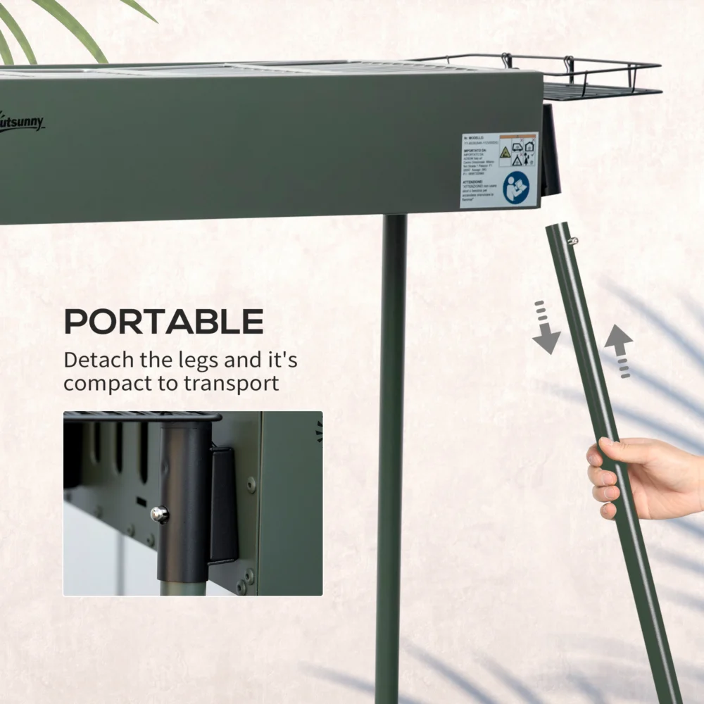 Μπάρμπεκιου με κάρβουνο Outsunny με 2 ψησταριές και πλαϊνά καλάθια, 77x30x70cm, σκούρο πράσινο 846-112V00DG