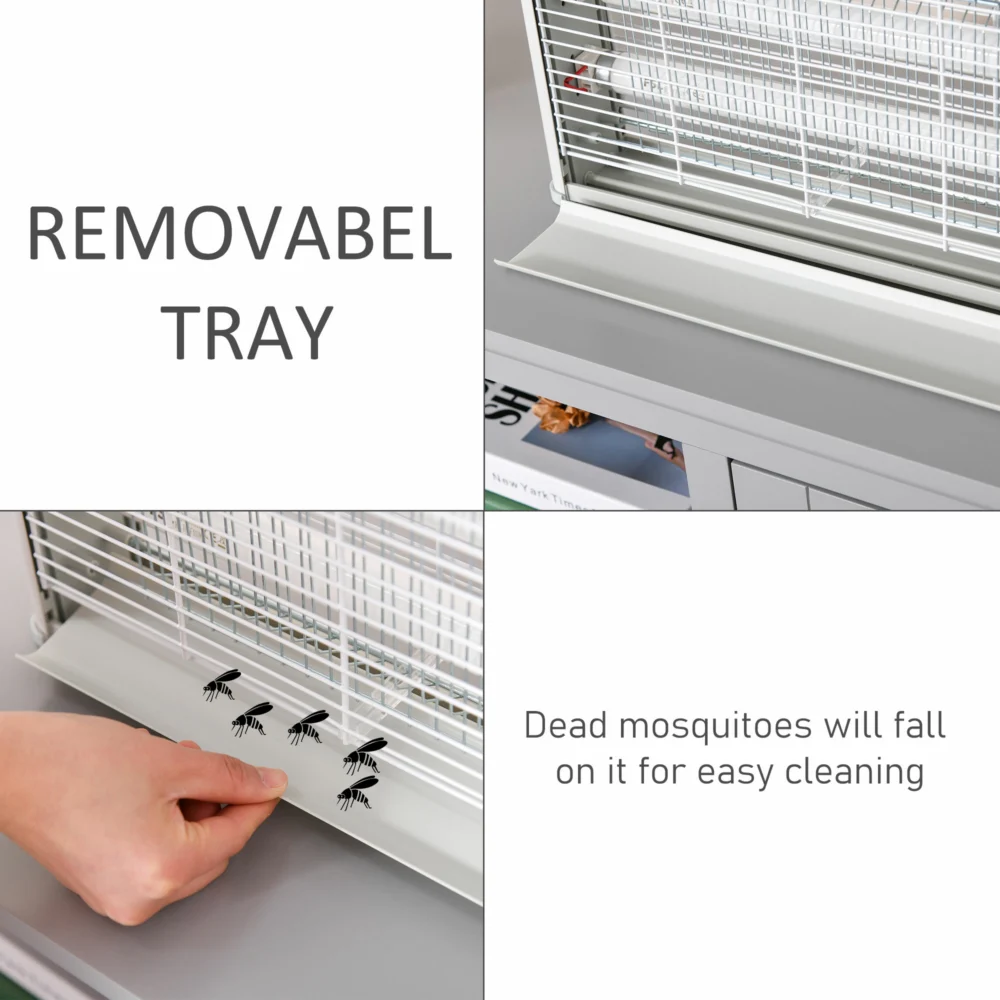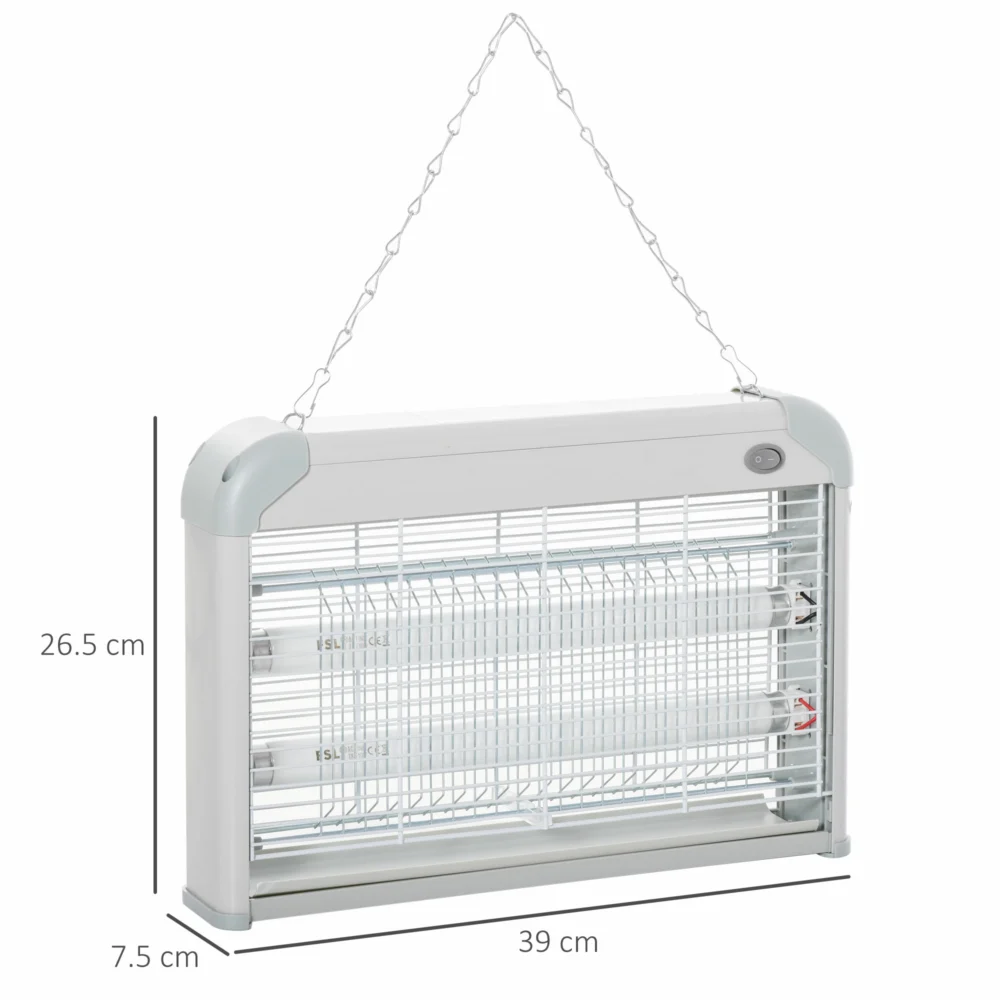 Η ηλεκτρική εντομοπαγίδα, από την εταιρία Outsunny, μπορεί να σκοτώσει αποτελεσματικά όχι μόνο τα κουνούπια αλλά και άλλα έντομα όπως μύγες, σκώρους, σκνίπες, ψύλλους και κατσαρίδες για να δημιουργήσει ένα ασφαλές και άνετο περιβάλλον για εσάς και την οικογένειά σας. Έχει 2 λάμπες LED που εκπέμπουν υπεριώδεις ακτίνες για να προσελκύσουν έντομα. Καλύπτει έκταση 60 m² και μπορείτε να τη χρησιμοποιήσετε τόσο σε εσωτερικούς όσο και σε εξωτερικούς χώρους.