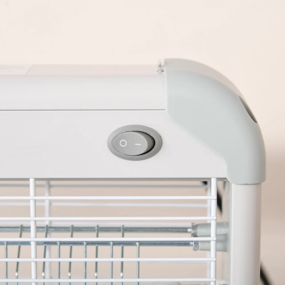 Η εντομοπαγίδα, είναι εξοπλισμένη με προστατευτική σχάρα για να αποφύγετε την άμεση επαφή με τα φώτα LED και το εντομοκτόνο τμήμα. Επιπλέον, έχει αφαιρούμενο δίσκο στη βάση για εύκολο καθάρισμα. Μπορείτε να την κρεμάσετε από την οροφή ή να την τοποθετήσετε στο τραπέζι.