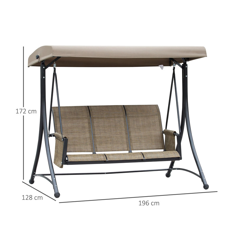 Μεταλλική Τριθέσια Κούνια Εξωτερικού Χώρου με Σκίαστρο 196 x 128 x 172 cm Outsunny 84A-110V01