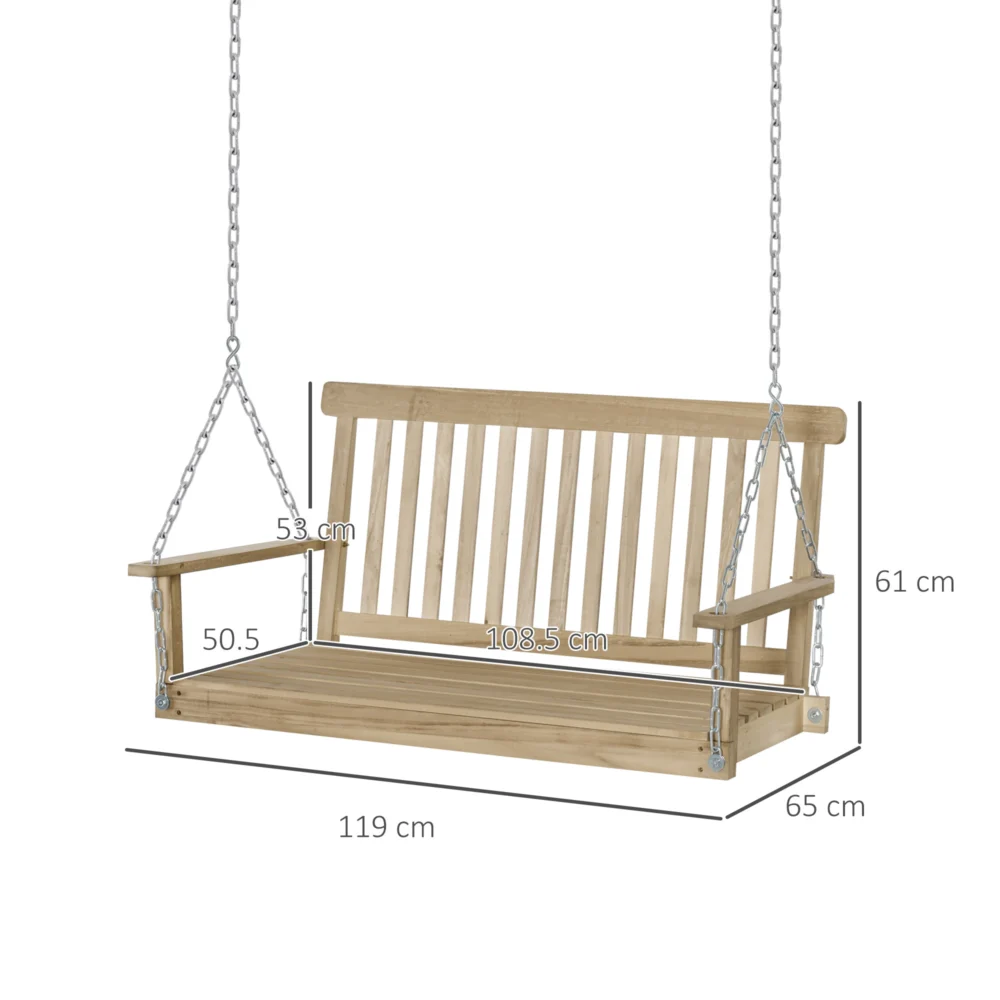 Outsunny Κουνιστή Καρέκλα Εξωτερικού Χώρου Κρεμαστό για 2 Άτομα σε Ξύλινες και Μεταλλικές Αλυσίδες, Φυσικό Χρώμα 119x65x61cm 84A-154ND