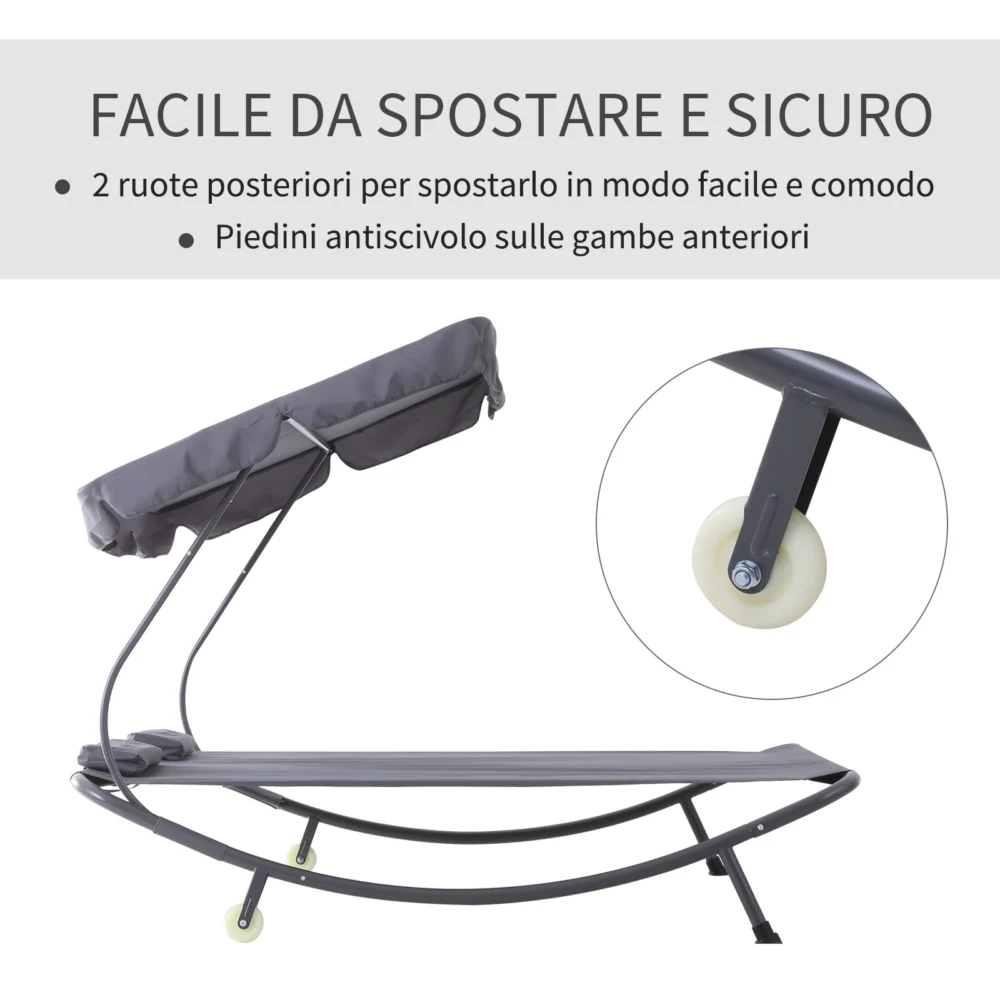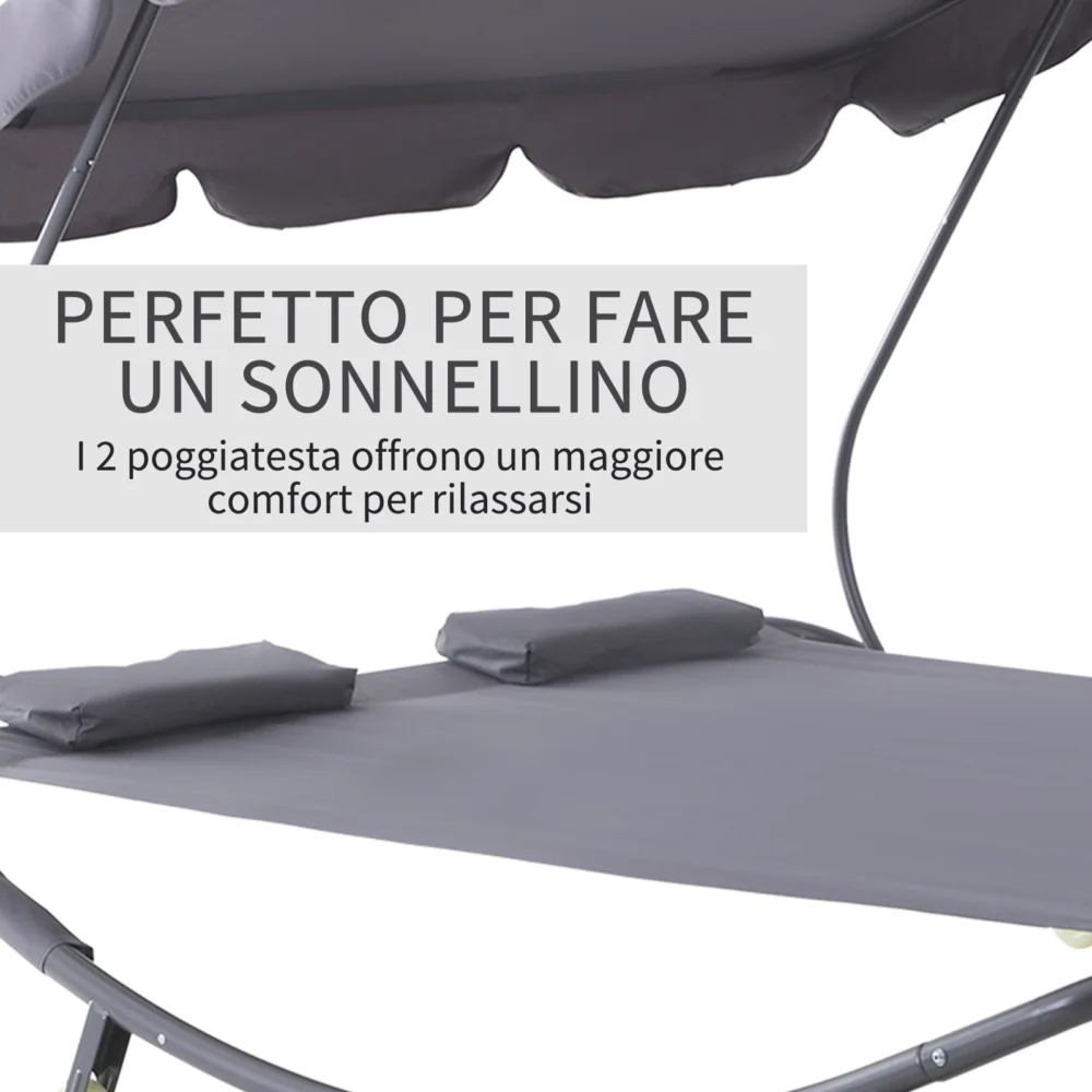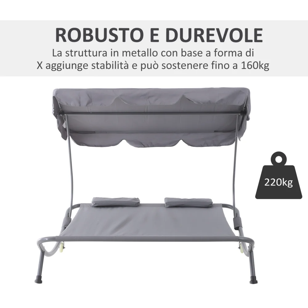 Ξαπλώστρα Outsunny Διπλή Ξαπλώστρα με Ρυθμιζόμενη Οροφή, Γκρι 84B-174GY