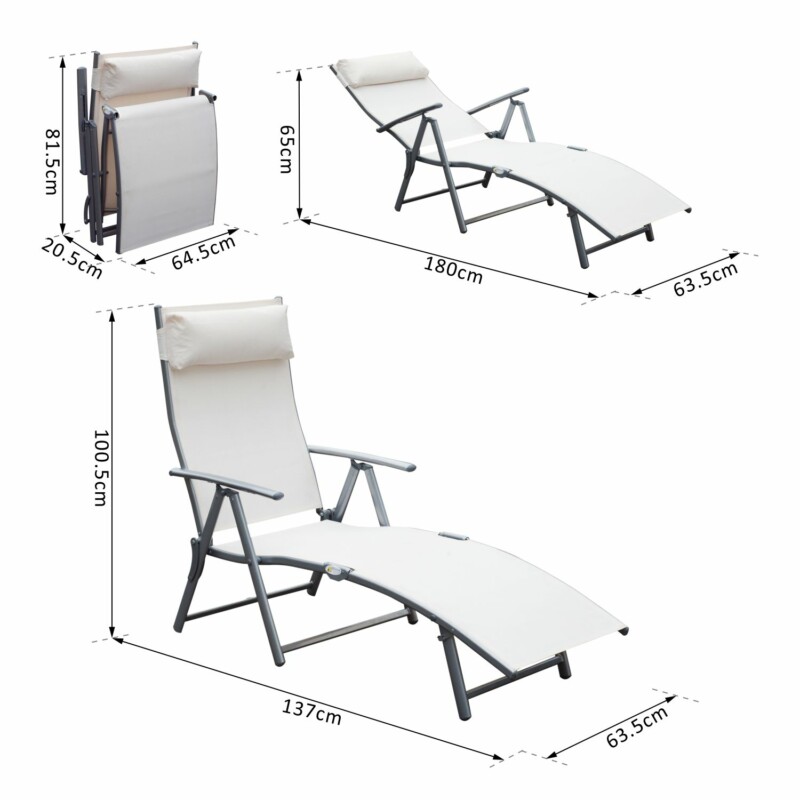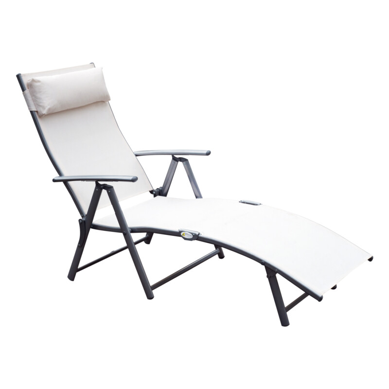 Outsunny Πτυσσόμενη Ξαπλώστρα κήπου με μαξιλάρι, πλάτη με 7 ξαπλώστρες, 137×63,5×100,5 cm, μπεζ 84B-184CW