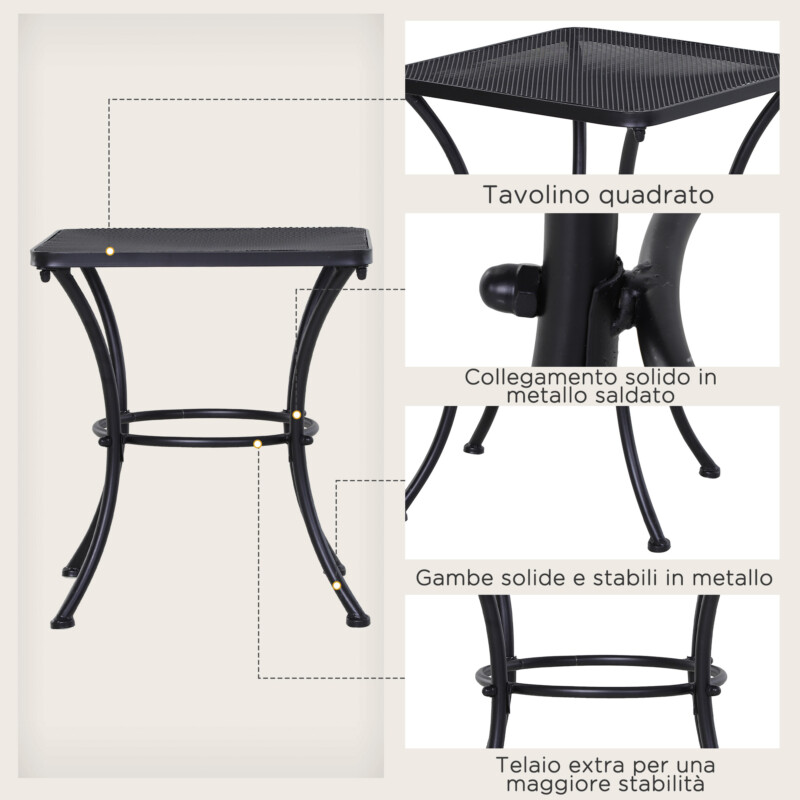 Τραπέζι σαλονιού Outsunny Square Steel Garden με διάτρητη κορυφή, 45x45x50 cm, μαύρο 84B-341