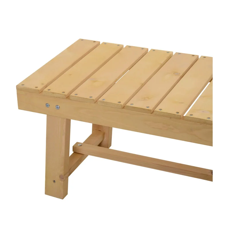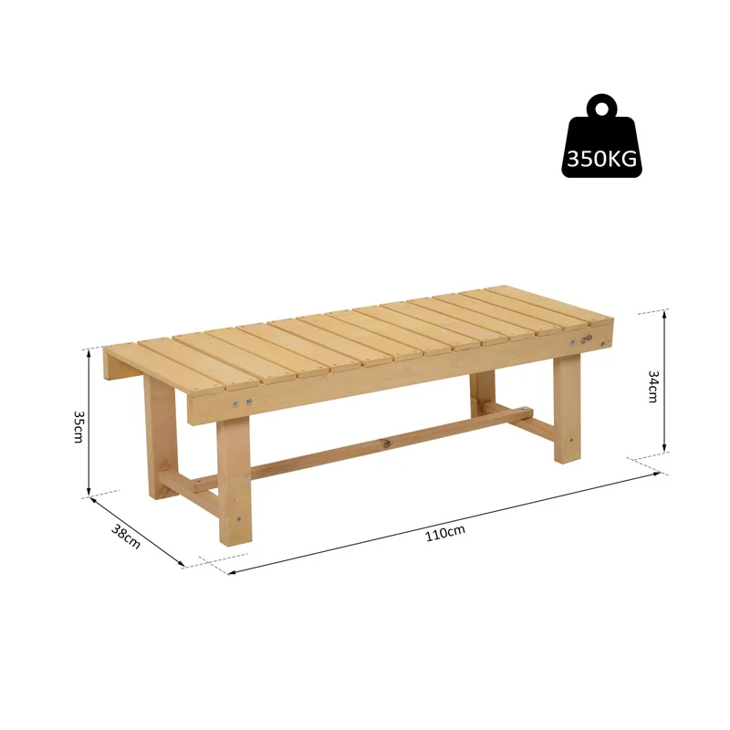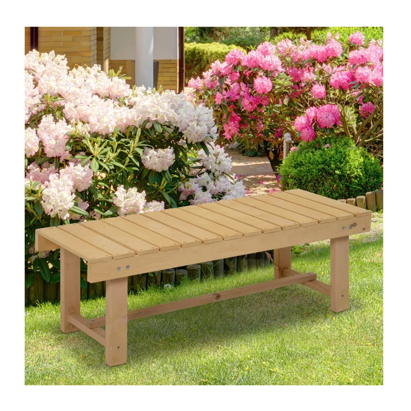 Το παγκάκι, από την εταιρία Outsunny, συνδυάζει μασίφ ξύλο έλατου και μακρόστενο σχεδιασμό, για να μπορείτε να το τοποθετείτε σχεδόν οπουδήποτε. Ο σχεδιασμός του είναι τέτοιος ώστε να μη συγκρατεί το νερό στην επιφάνεια και διαθέτει κάτω μπάρα για να στηρίζετε τα πόδια σας.