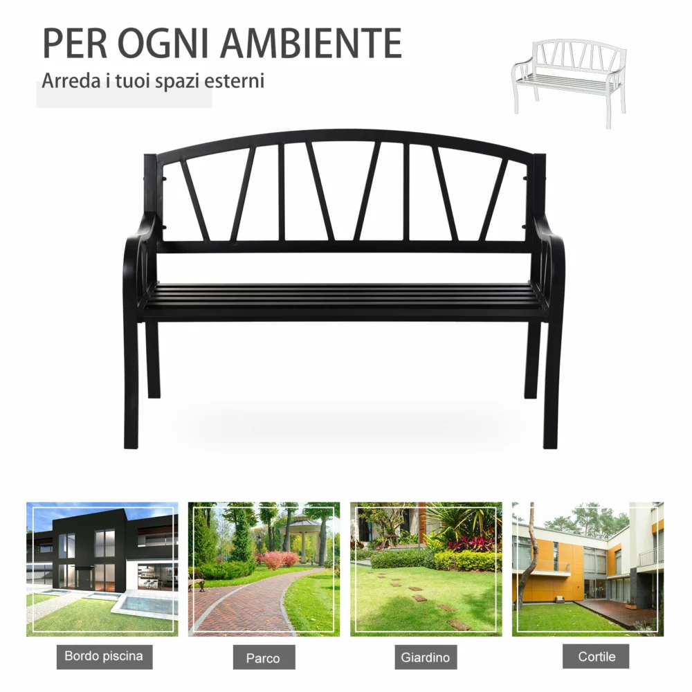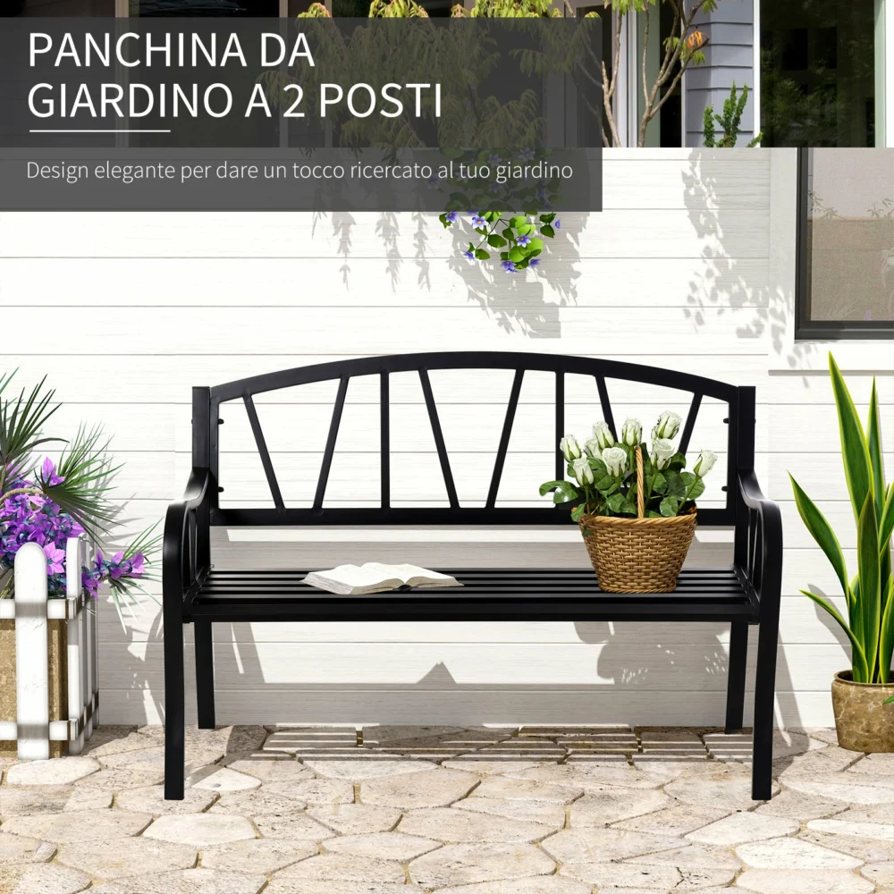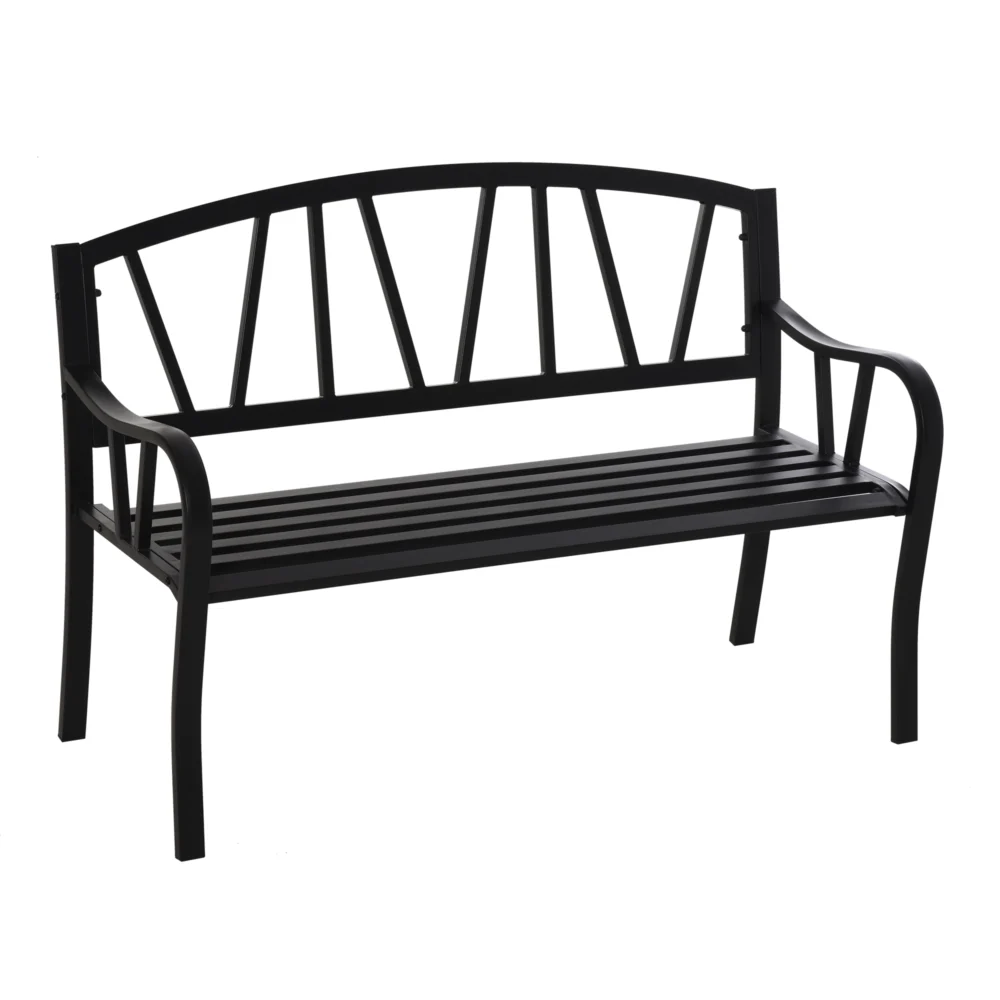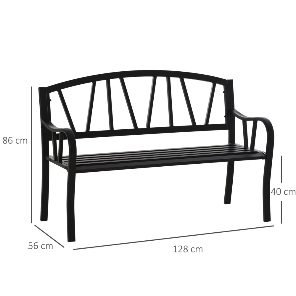Outsunny Αδιάβροχος Μαύρος Μεταλλικός Πάγκος Κήπου, Σιδερένιος Πάγκος 2 Θέσεων εξωτερικού χώρου, 128x56x86cm 84B-478