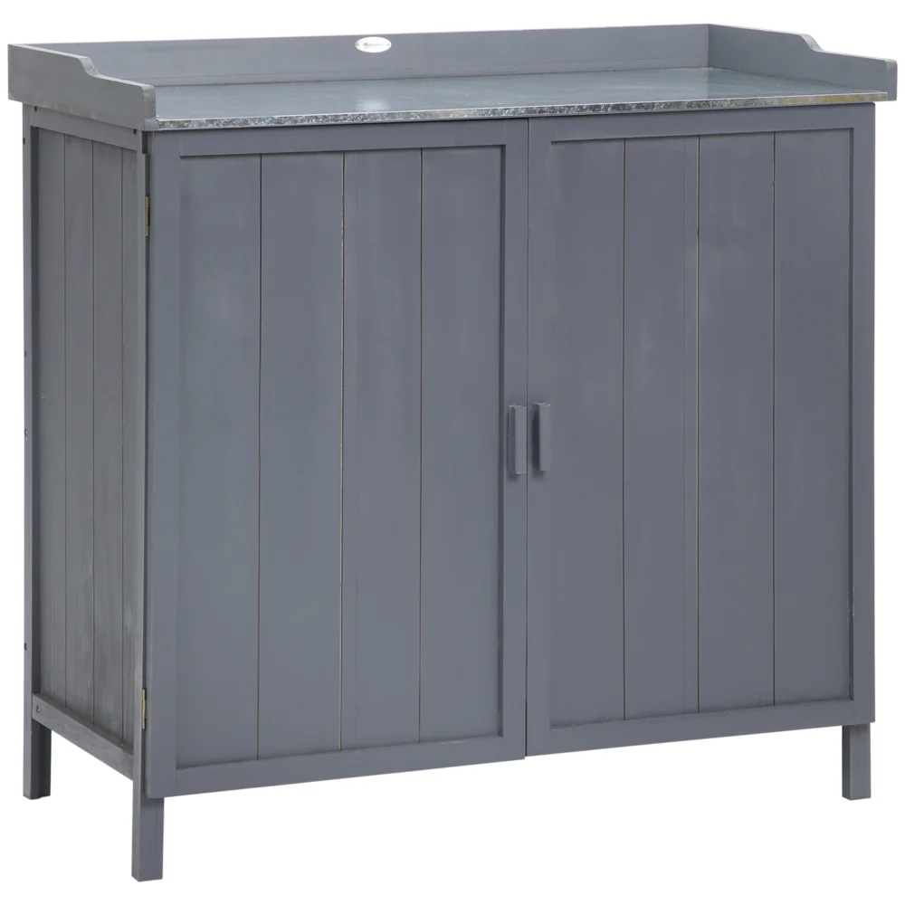 Outsunny Ξύλινο ντουλάπι εξωτερικού χώρου με μεταλλικό επάνω μέρος και 2 ράφια εργαλείων, 98x48x95,5 cm, γκρι 84B-636GY