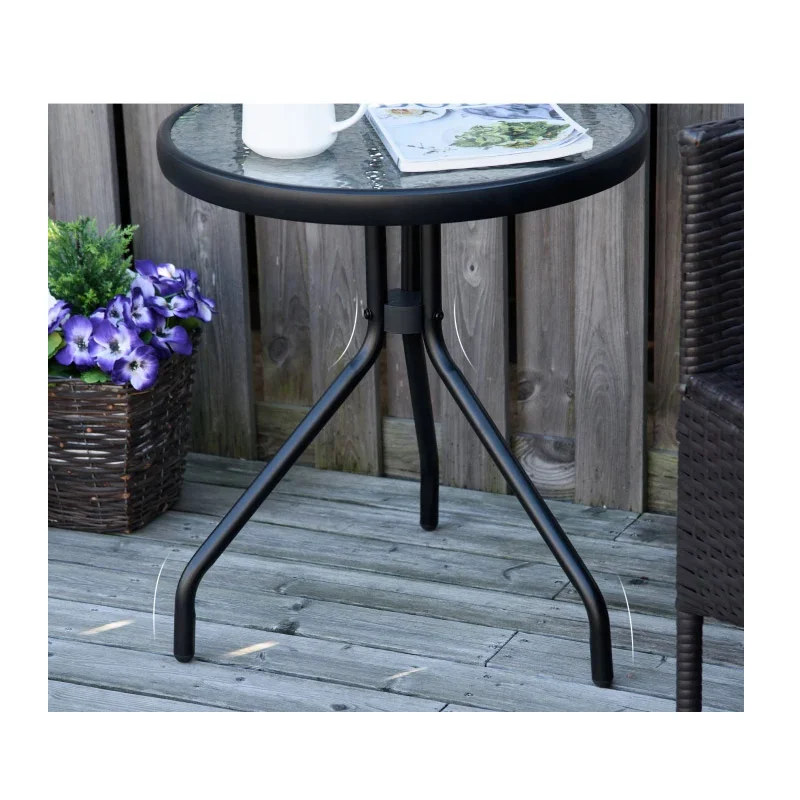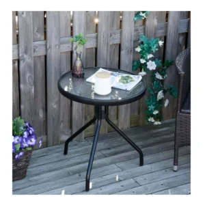 Μεταλλικό Στρογγυλό Τραπέζι Εξωτερικού Χώρου με Γυάλινη Επιφάνεια 50 x 55 cm Outsunny 84B-654