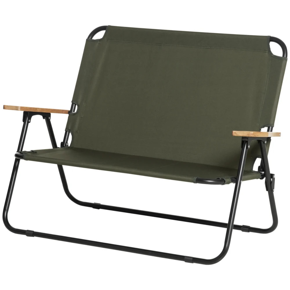 Outsunny Διπλή 2θέσια Καρέκλα Κάμπινγκ, Πτυσσόμενη με Χερούλι και Μπράτσα, 141x67x80cm, Πράσινο 84B-859