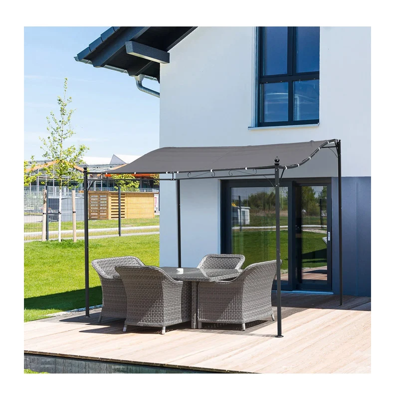Η πέργκολα, από την εταιρία, Outsunny, διαθέτει μεταλλική κατασκευή, καμπύλο σχεδιασμό και είναι κατάλληλη για όλους τους εξωτερικούς χώρους. Η οροφή της είναι από ύφασμα πολυεστέρα και διαθέτει 4 οπές στην άκρη της που επιτρέπουν στο νερό της βροχής να αποστραγγιστεί. Μπορεί να στερεωθεί στον τοίχο, καθιστώντας την κατάλληλη για την είσοδο ή το παράθυρο.
