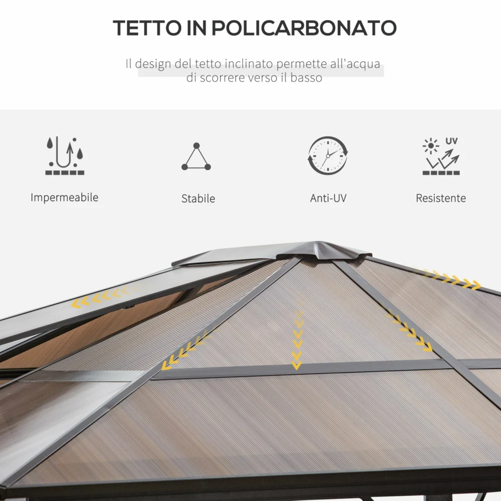Outsunny Garden Gazebo με ηλιοροφή από πολυανθρακικό Anti-UV 50+ 84C-203