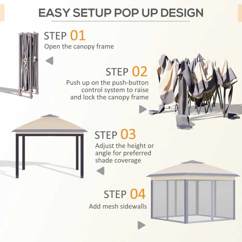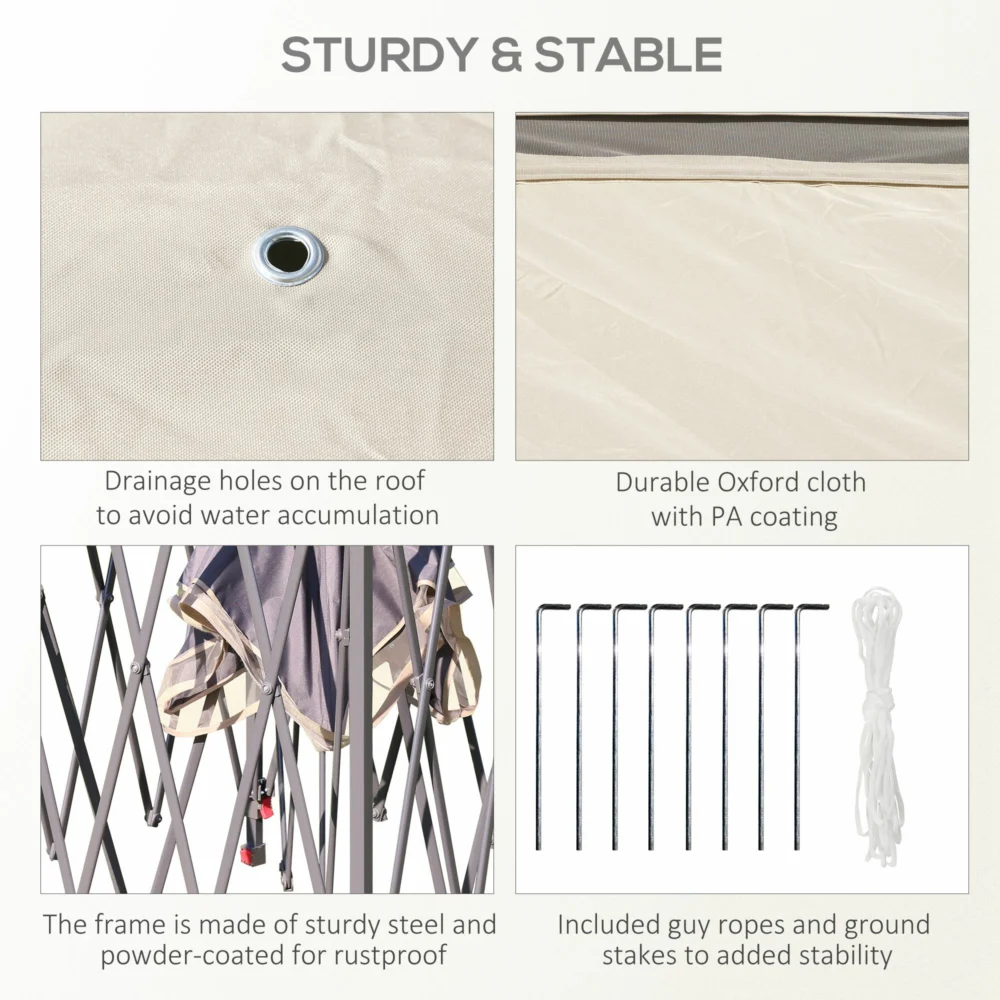 Outsunny Πτυσσόμενο Κιόσκι με κουνουπιέρα και διπλό κουβούκλιο, 330x330x288cm, Μπεζ 84C-300V01BG