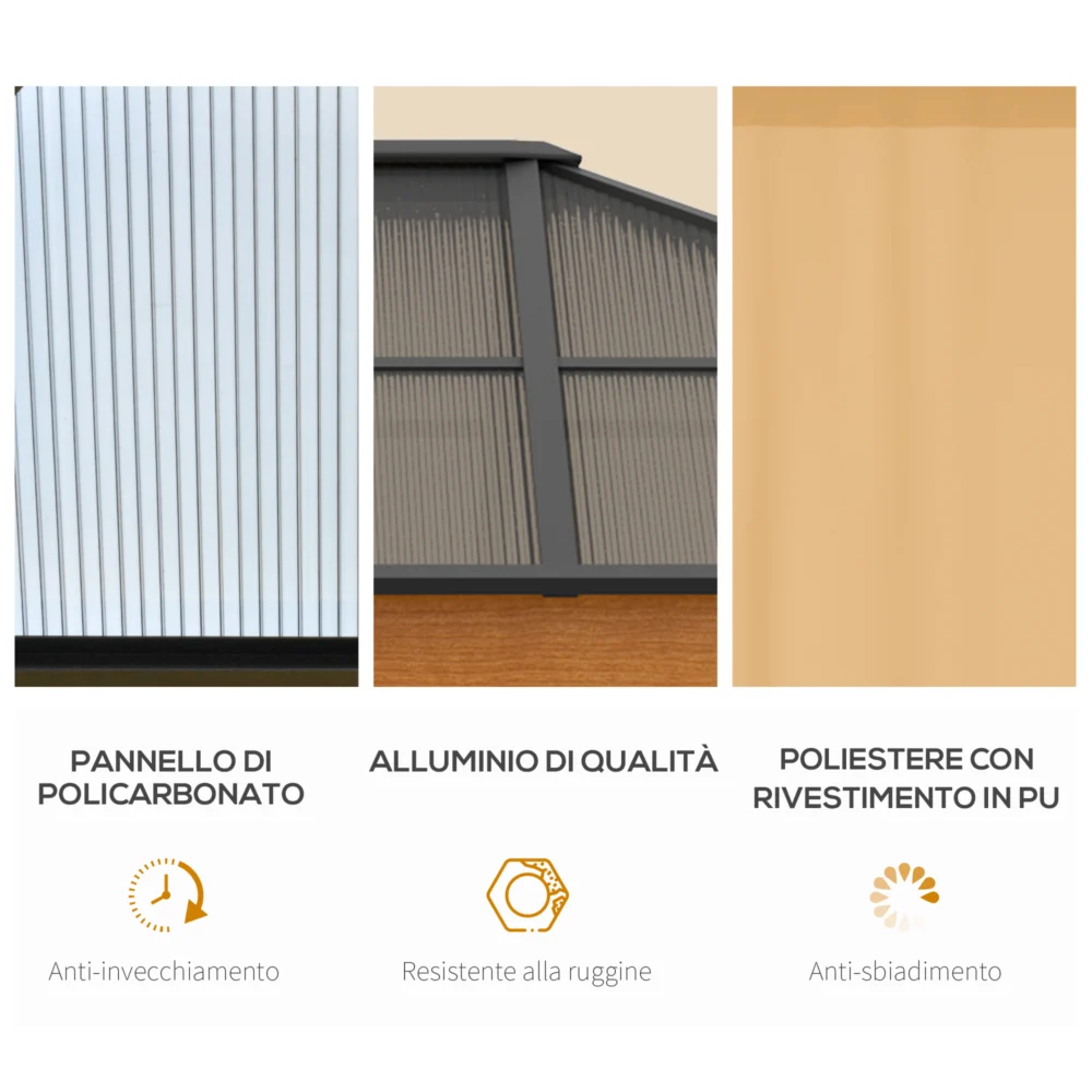 Outsunny Κιόσκι κήπου από χάλυβα, αλουμίνιο και πολυεστέρα με πολυανθρακική στέγη και κουνουπιέρες, 2,94×3,60×2,67 m, Χακί 84C-347V00KK