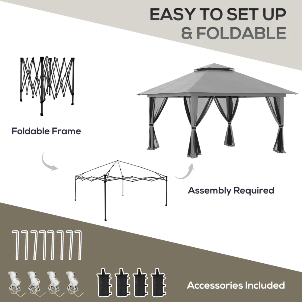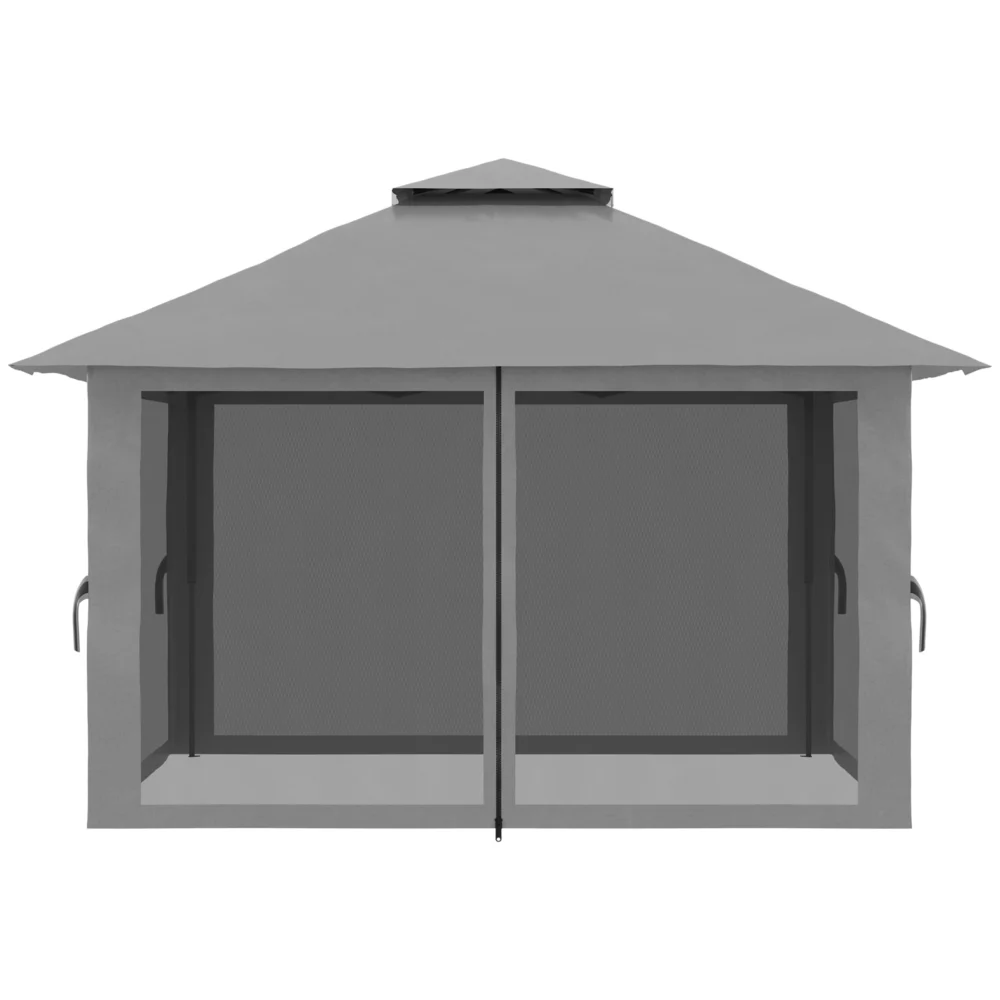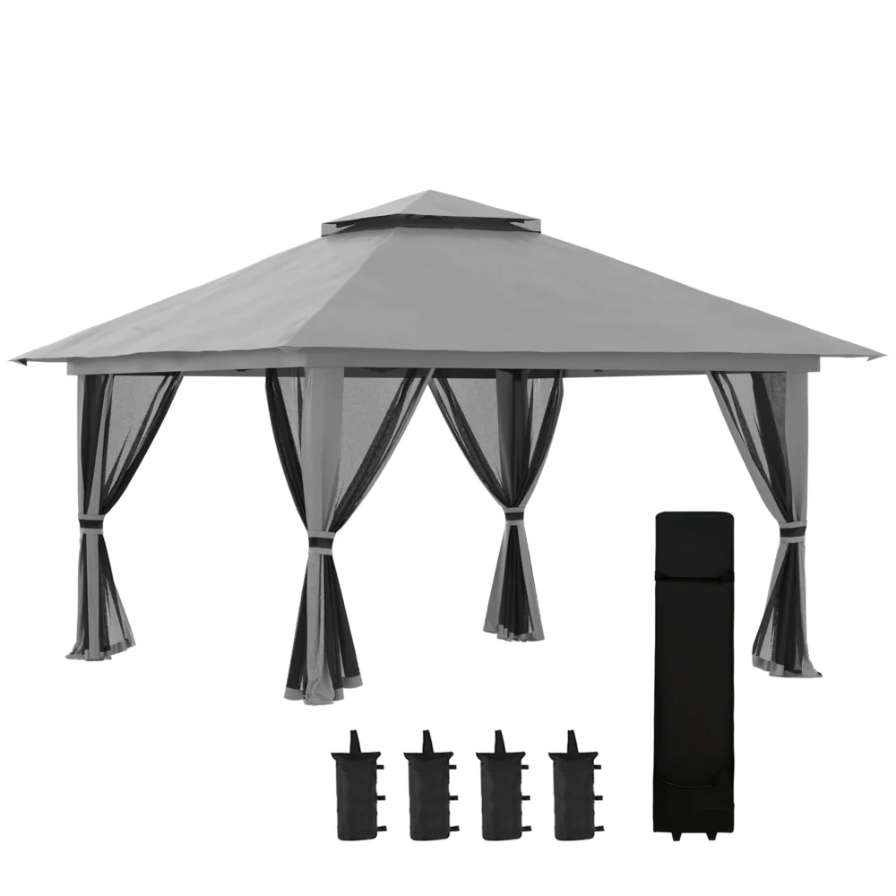 Outsunny 4×4 πτυσσόμενο κιόσκι με τσάντα μεταφοράς, μανταλάκια, σχοινιά και τσάντες άμμου, ύφασμα από χάλυβα και Oxford, 392x392x283 cm, γκρι 84C-353V00CG