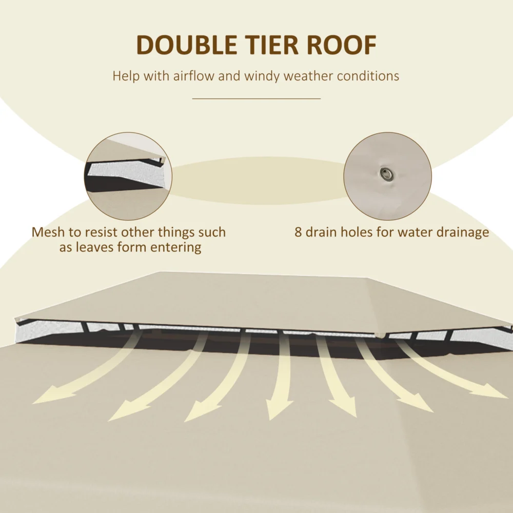 Outsunny Ανταλλακτικό κουβούκλιο για κιόσκι κήπου με οροφή 2 επιπέδων, κάλυμμα από πολυεστέρα για κιόσκι 3×4 m, μπεζ 84C-357V01BG