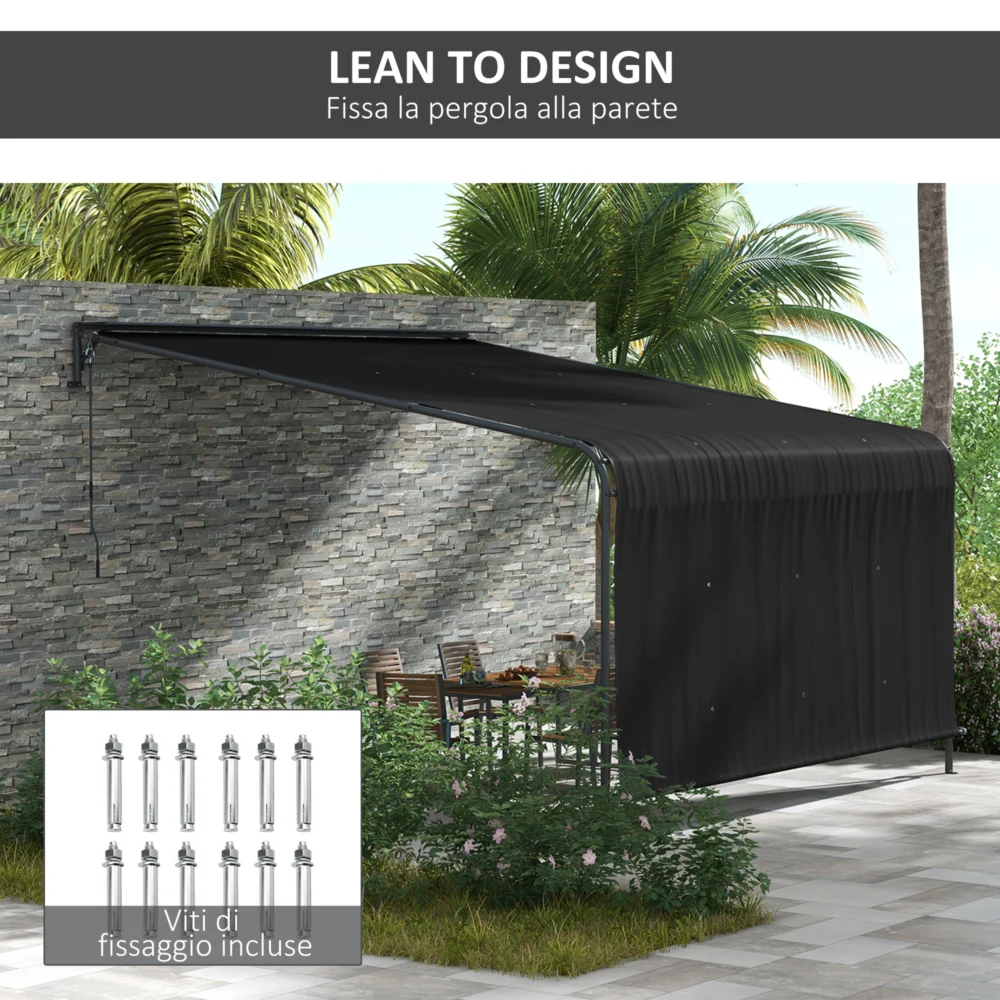 Πέργκολα 3×4 m με αναδιπλούμενο κουβούκλιο και μανιβέλα, σε ατσάλι και πολυεστέρα, σκούρο γκρι 84C-473V00CG