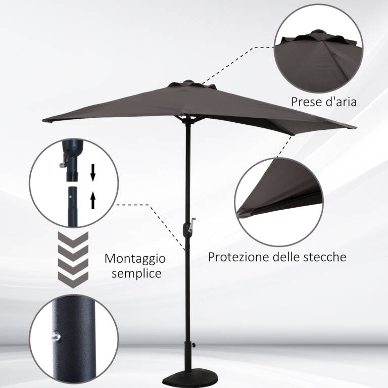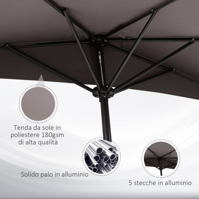 Outsunny Outsunny Outdoor Outdoor Ombrella σε αδιάβροχο Anti UV Polyester 269x138x236cm Γκρι 84D-007GY