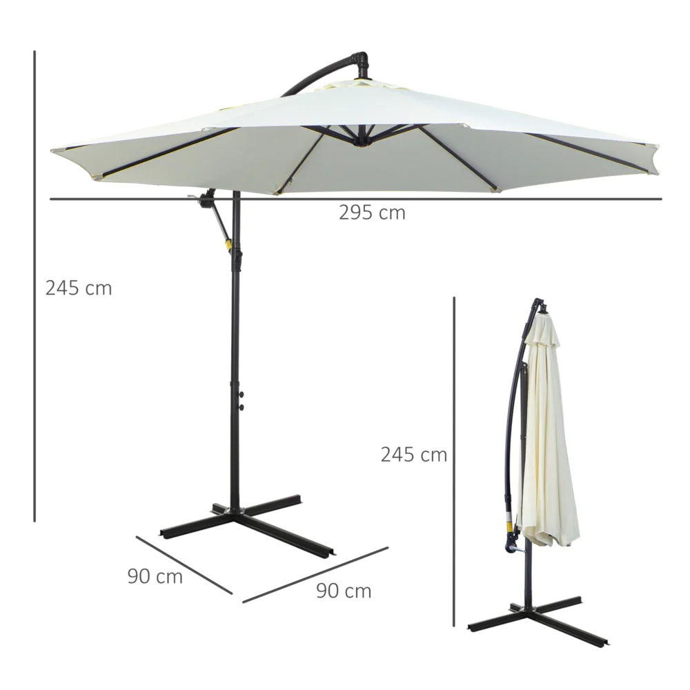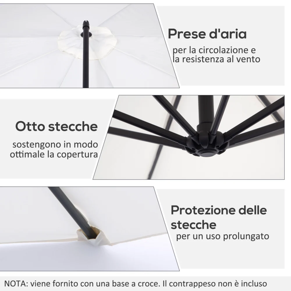 Ομπρέλα κήπου Outsunny με μανιβέλα, Φ3×2,5m, Λευκό 84D-037CW