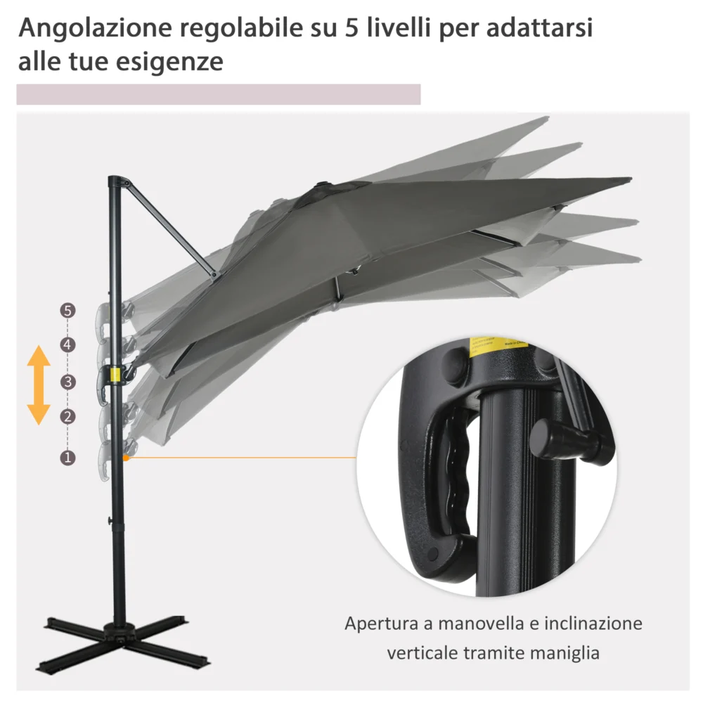 Ομπρέλα κήπου Outsunny με ρυθμιζόμενη γωνία 5 επιπέδων και περιστροφή 360°, 245x245x248 cm 84D-051V00GY