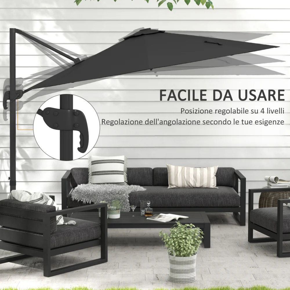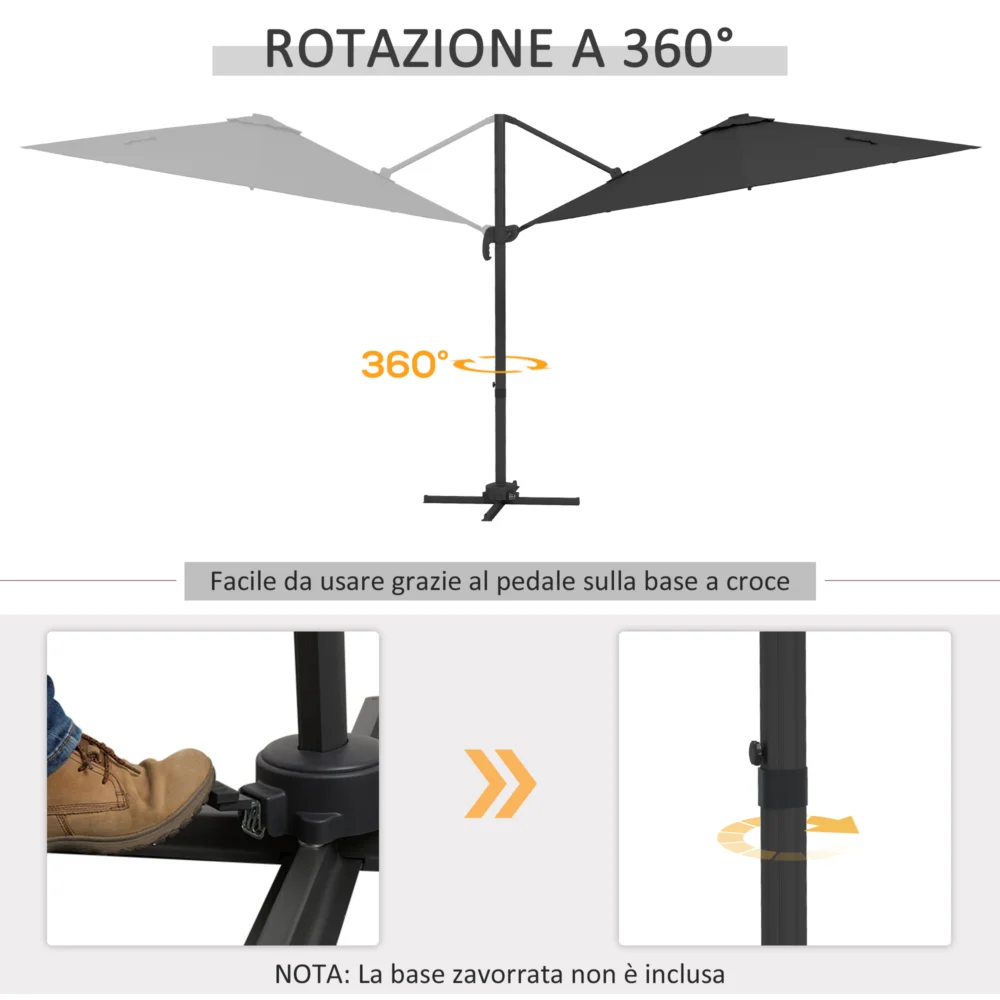 Outsunny ομπρέλα εξωτερικού χώρου με φώτα LED και ρυθμιζόμενη γωνία, σε αλουμίνιο και πολυεστέρα Ø3×2,5 m, γκρι 84D-110V03CG