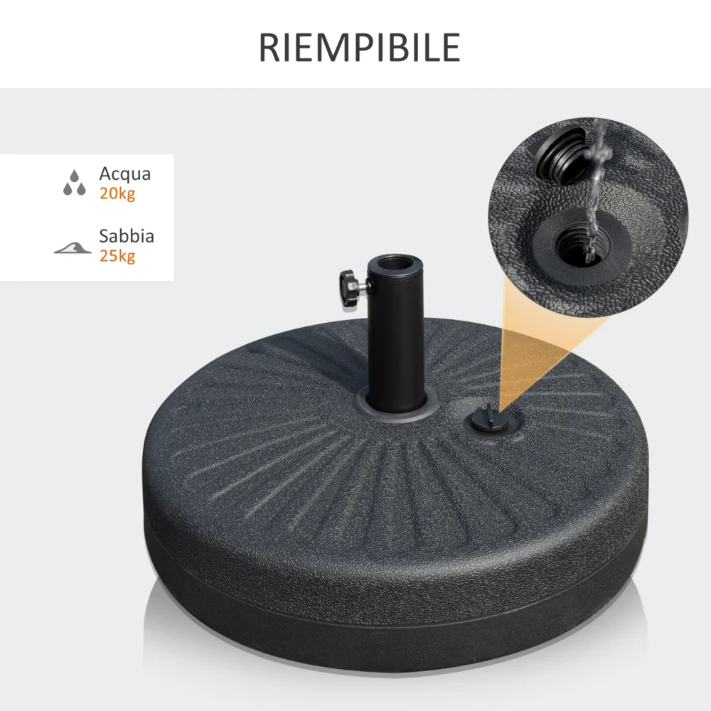 Βάση ομπρέλας Outsunny Garden με κεντρικό στύλο Φ3,8cm και 4,8cm, HDPE Μαύρο 84D-188