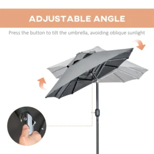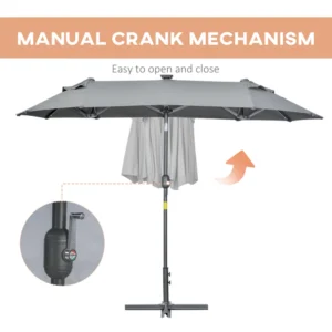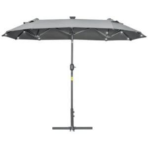 Outsunny Διπλή Ομπρέλα με Σταυρή Βάση και Ηλιακά Φώτα, 295x150x219cm, Γκρι 84D-223V00GY