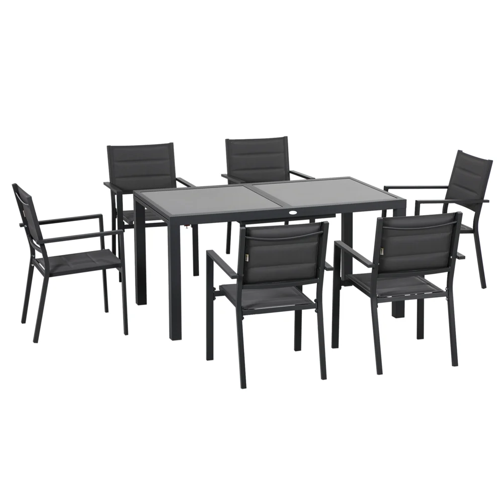 Outsunny Σετ κήπου με επεκτάσιμο γυάλινο τραπέζι και 6 καρέκλες με αναπνεύσιμο κάθισμα, σκούρο γκρι 84G-093V00CG