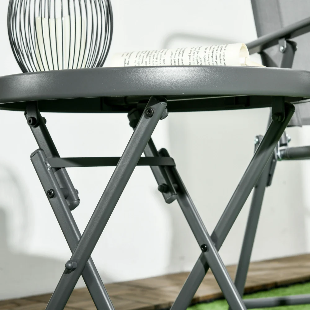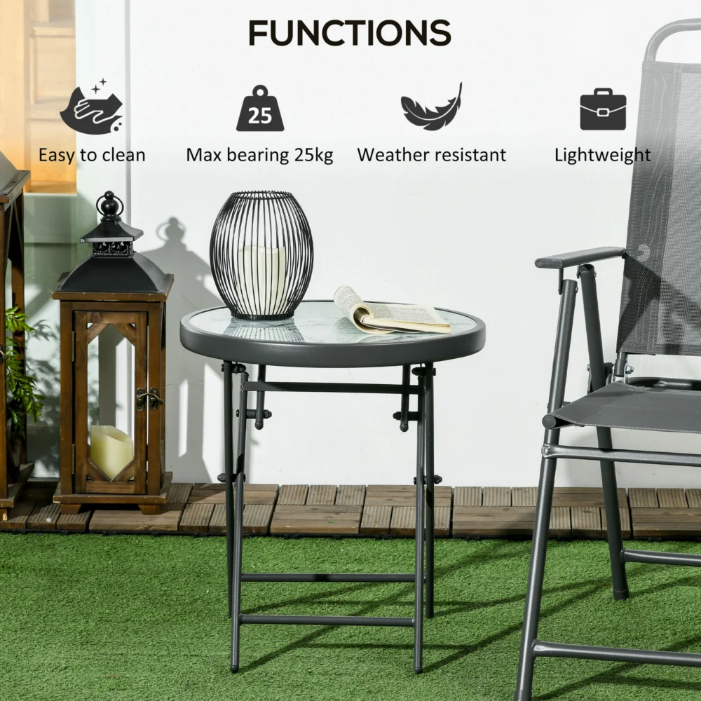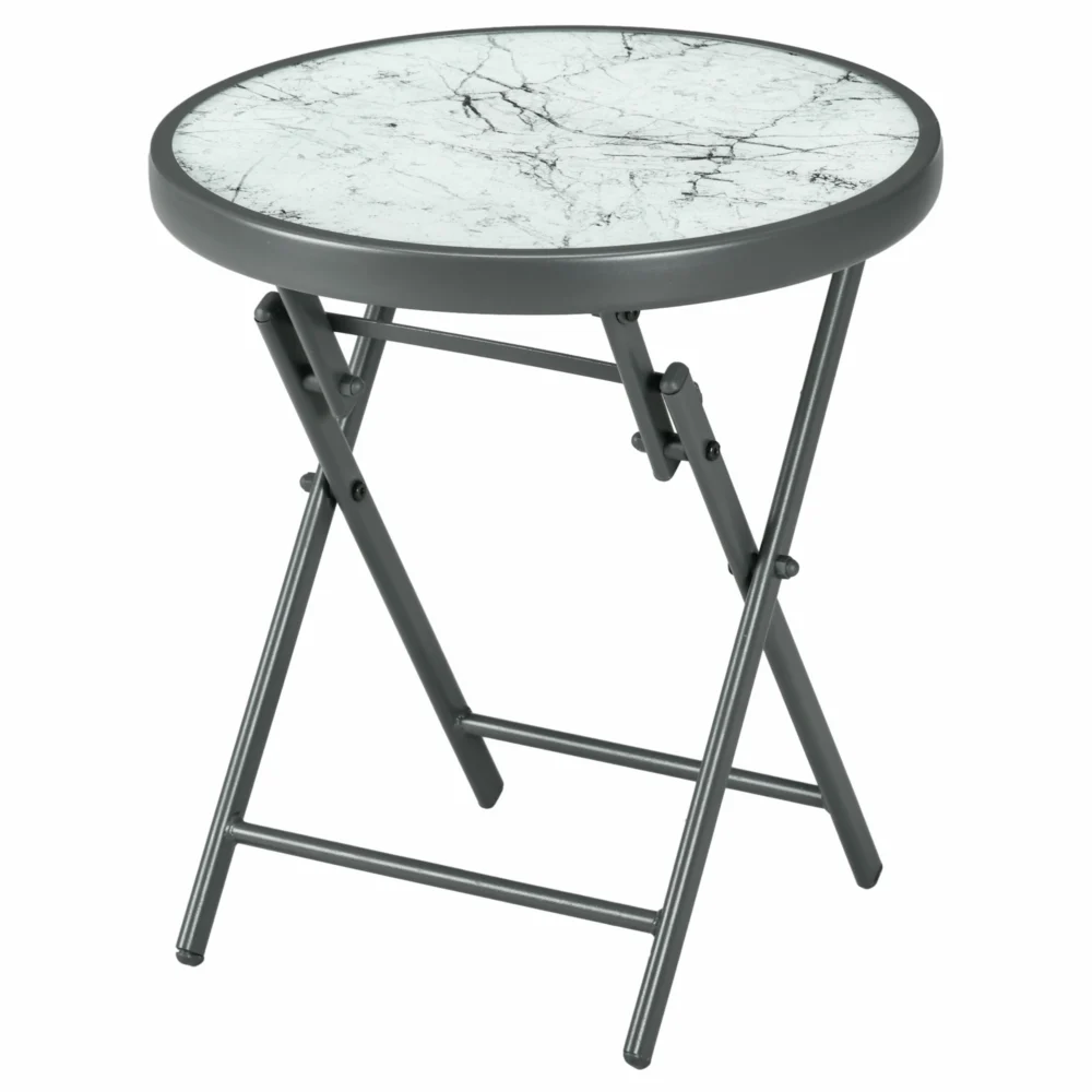 Outsunny Πτυσσόμενο Τραπεζάκι Σαλονιού Κήπου με Μάρμαρο Εφέ Γυάλινη Επιφάνεια, Ø45x50cm, Γκρι 84G-260V02CG