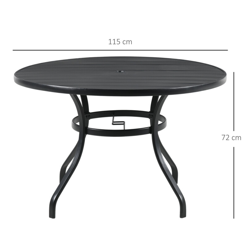 Τραπέζι κήπου στρογγυλό για 4 άτομα με τρύπα ομπρέλας και μεταλλικά πηχάκια, Ø115x72cm, Μαύρο 84G-277V00BK