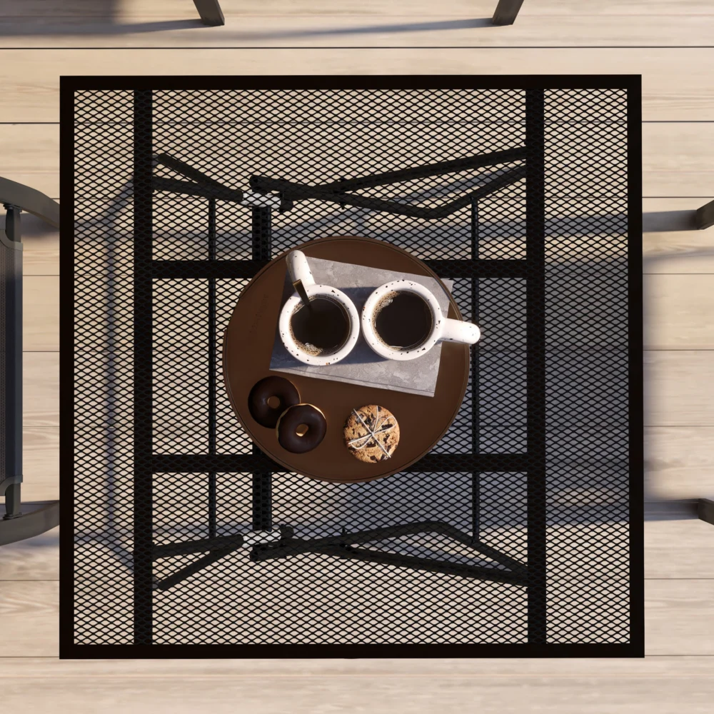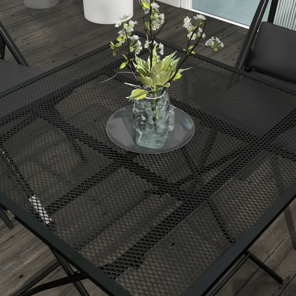 Outsunny τετράγωνο πτυσσόμενο τραπέζι κήπου με ατσάλινο διχτυωτό επάνω μέρος, 80x80x74 cm, μαύρο 84G-323V00BK