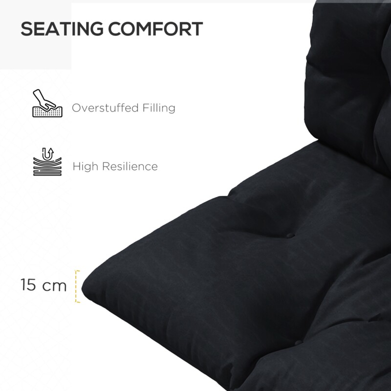 Σετ 2 μαξιλαριών κήπου για καναπέδες και παλέτες από πολυεστέρα με παχιά επένδυση, μαύρο 84G-353V00BK