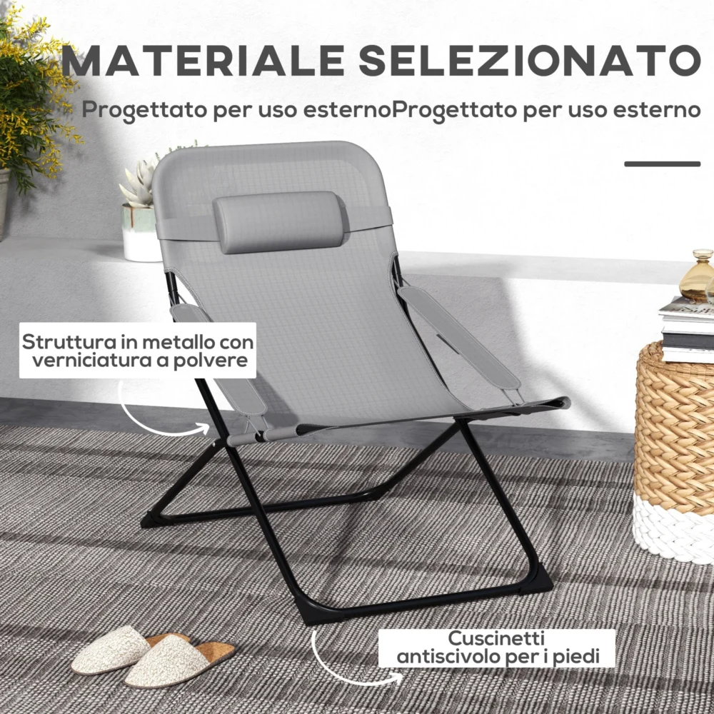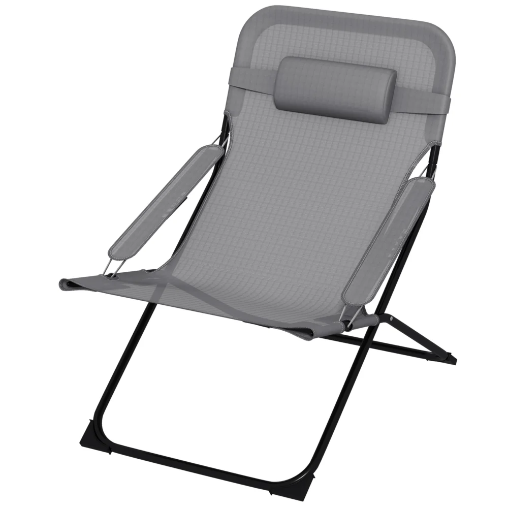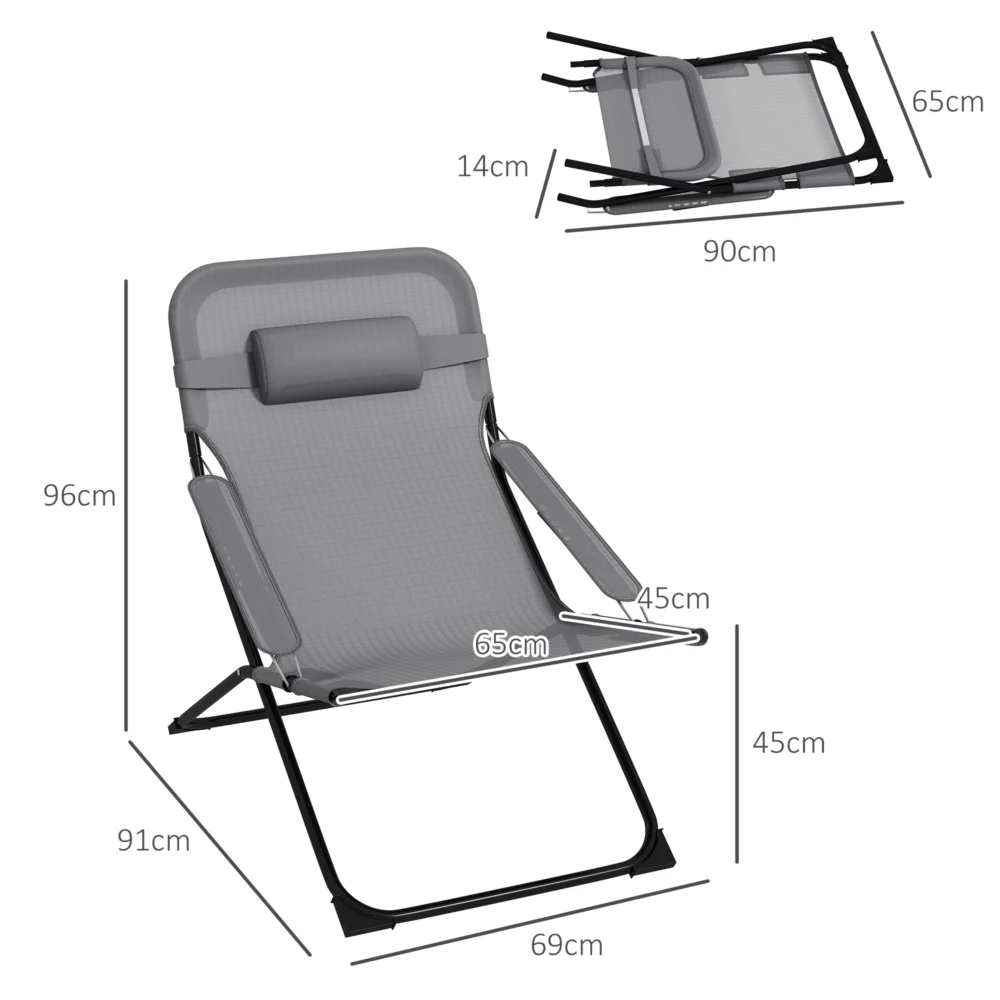 Πτυσσόμενη και ανακλινόμενη καρέκλα κήπου σε 4 επίπεδα, από ατσάλι και πολυεστέρα, 69x91x96 cm, μαύρο γκρι 84G-373V00GY