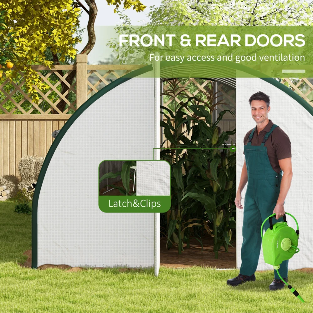 Θερμοκήπιο Outsunny Tunnel 6×3 m με 2 εισόδους και 8 παράθυρα, σε PE, πολυεστέρα και γαλβανισμένο χάλυβα, λευκό και πράσινο 84H-033V00WT