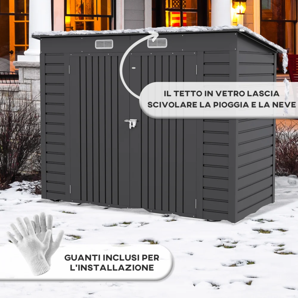 Υπόστεγο εργαλείων Outsunny με ρυθμιζόμενα ράφια και μάνδαλο, από γαλβανισμένο ατσάλι, 249x121x183 cm, γκρι 84H-118V00GY
