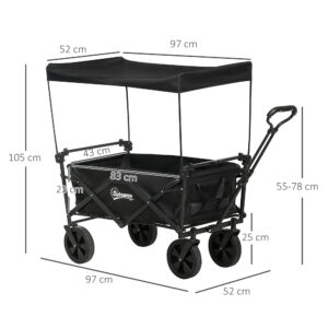 Τρόλεϊ κήπου Outsunny 110L με τηλεσκοπική λαβή και κουβούκλιο από ατσάλι και ύφασμα Oxford, μαύρο 84H-125V00BK