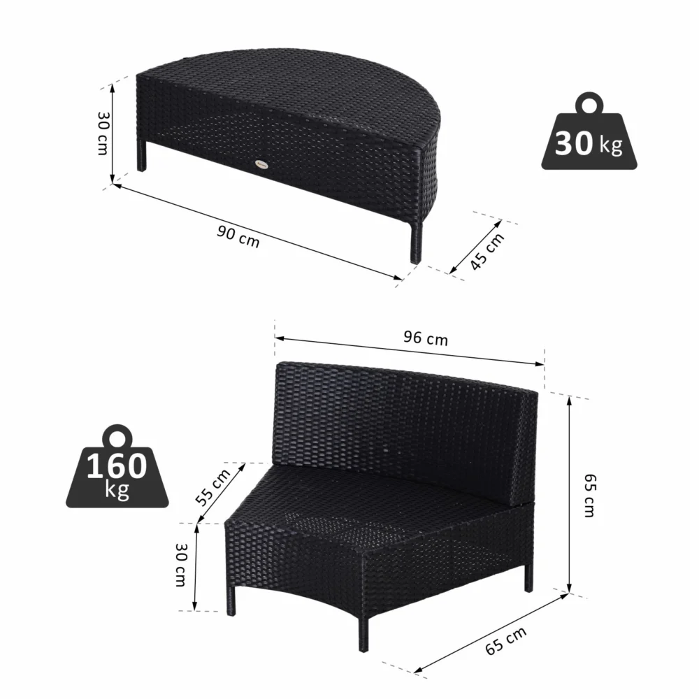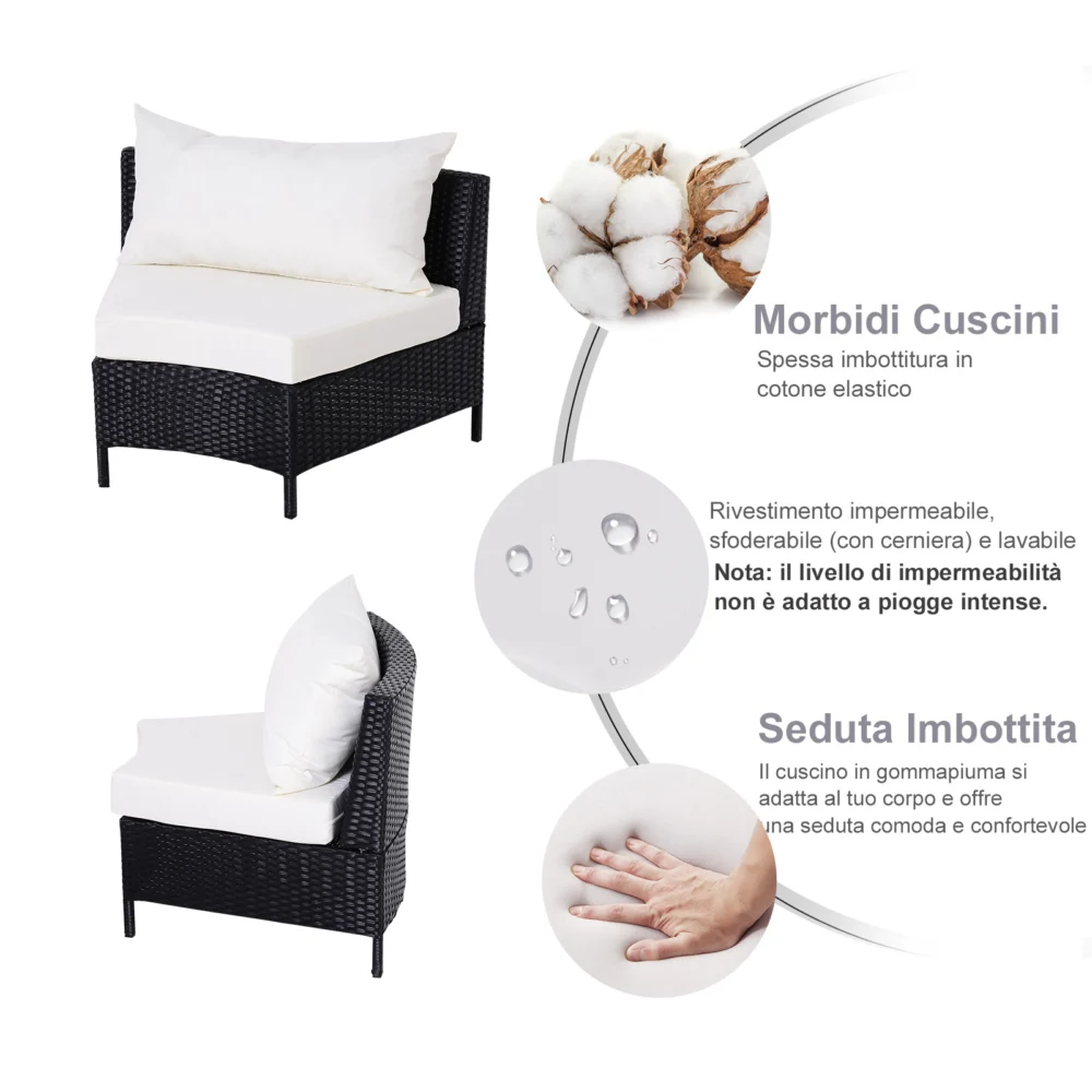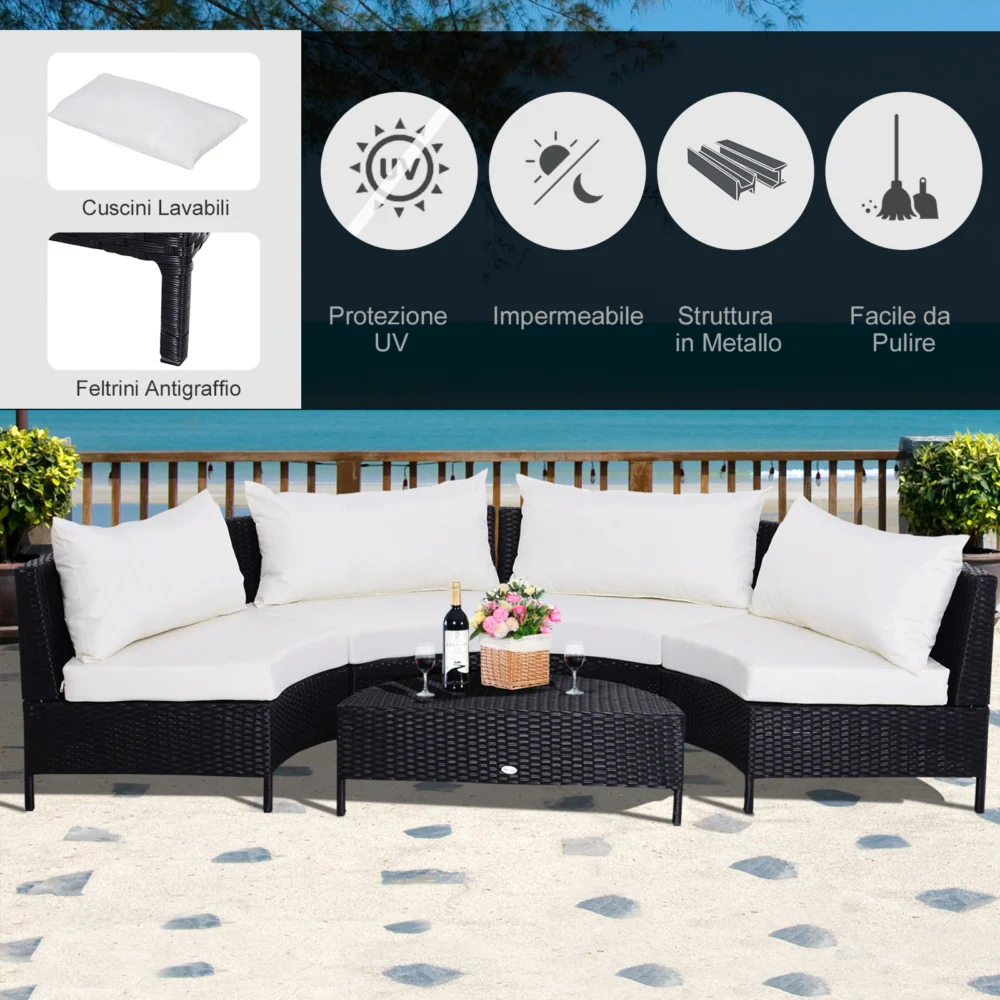 Έπιπλα κήπου Outsunny σε μαύρο ρατάν με λευκά μαξιλάρια, σετ 5 τεμαχίων με τραπεζάκι 860-081V01