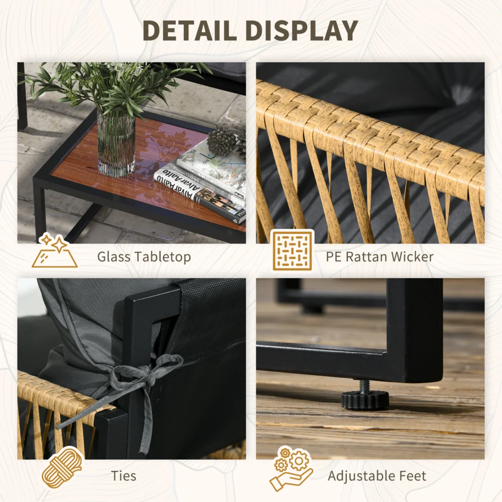 Outsunny Σετ κήπου Rattan 4 τεμαχίων με καναπέ, 2 καρέκλες και τραπεζάκι σαλονιού, γκρι και καφέ 860-326V01CG