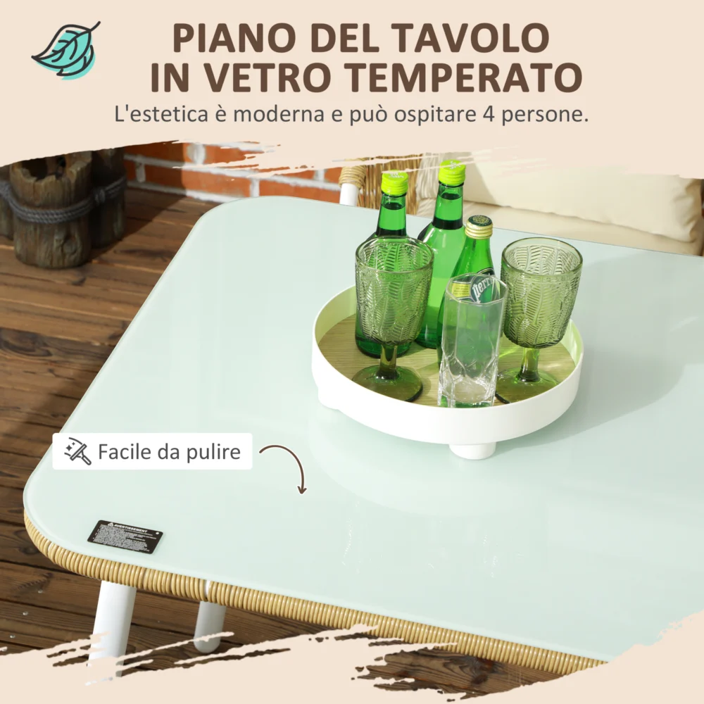 Σετ κήπου Outsunny από PE Rattan και αλουμίνιο με γυάλινο τραπέζι και 4 στοιβαζόμενες καρέκλες, κίτρινο 861-076V00YL