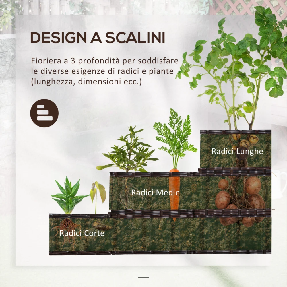 Outsunny υπερυψωμένος κήπος 3 επιπέδων από συνθετικό ρατάν χωρίς πάτο για φυτά και λαχανικά, 120x120x40 cm, γκρι 867-096