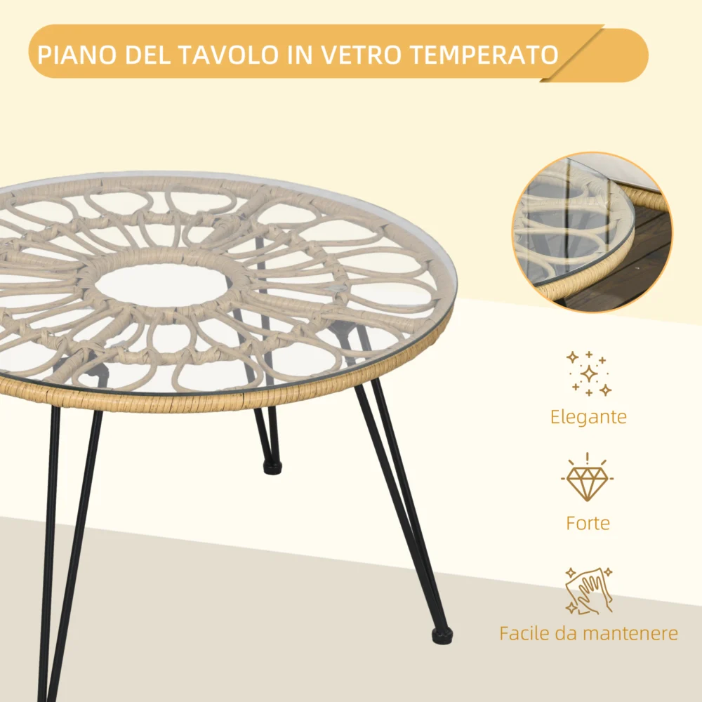 Outsunny σετ κήπου 5 τεμαχίων από μπαστούνι με στρογγυλό τραπέζι Ø82×50 cm και 4 καρέκλες 72x72x75 cm με μαξιλάρια 867-171V00BG