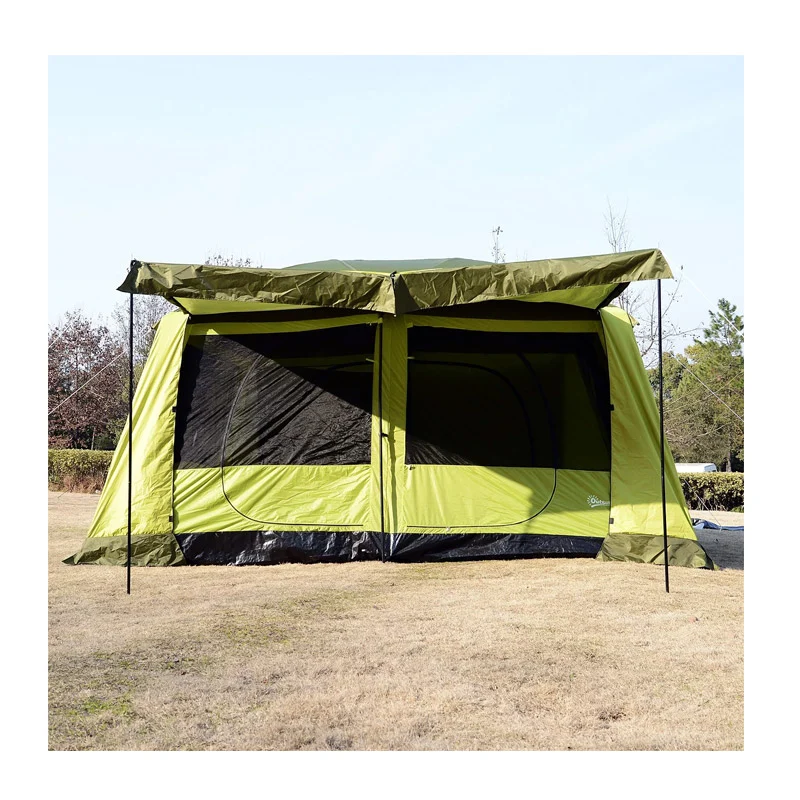 Η σκηνή camping, από την εταιρία Outsunny, είναι εξαιρετικά ευρύχωρη και μπορεί να φιλοξενήσει από 4 έως 8 άτομα. Κατασκευασμένη από υψηλής ποιότητας ύφασμα πολυεστέρα, ανθεκτικό στις καιρικές συνθήκες και τις ακτίνες UV. Αποτελείται από 2 μεγάλα υπνοδωμάτια στο εσωτερικό, με ανθεκτικούς και σταθερούς ορθοστάτες από fiberglass, ενώ οι ράβδοι για την ανύψωση της εισόδου είναι κατασκευασμένες από σιδερένιους σωλήνες.