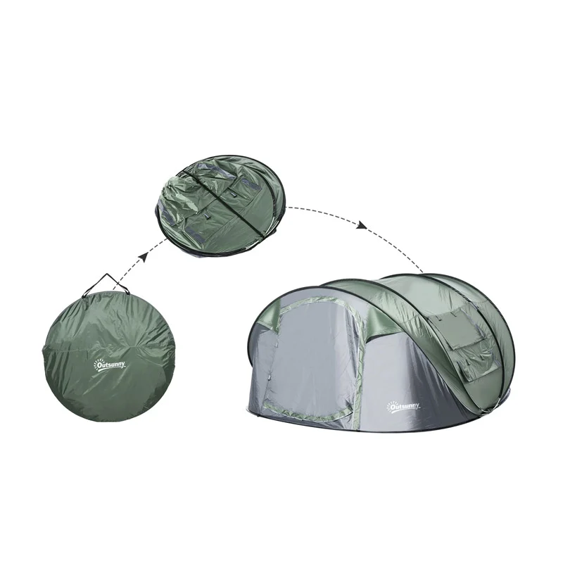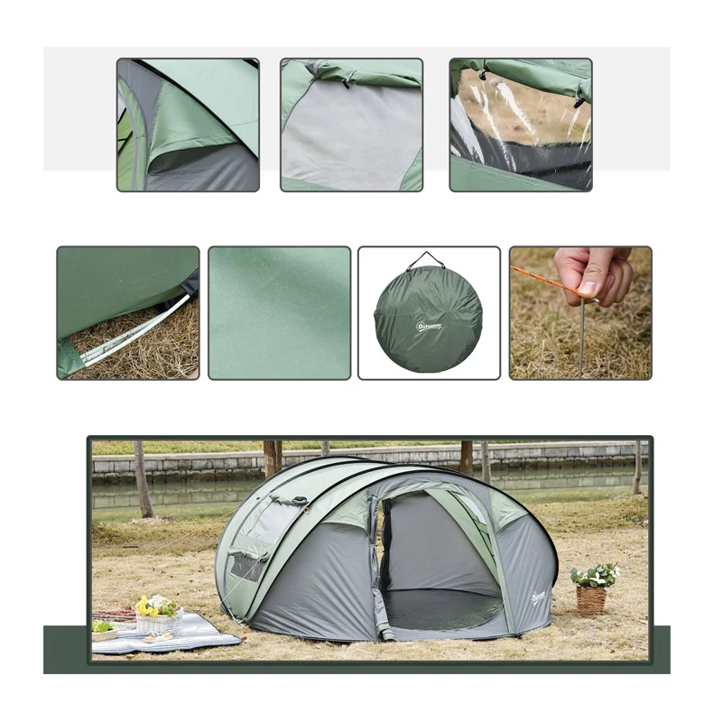 Η σκηνή, από την εταιρία Outsunny, διαθέτει ένα αναδυόμενο σύστημα ανοίγματος (pop-up), το οποίο σας επιτρέπει να την έχετε έτοιμη σε δευτερόλεπτα. Είναι ευρύχωρη και είναι κατάλληλη για 4-5 άτομα, ιδανική για οικογενειακές εκδρομές.
