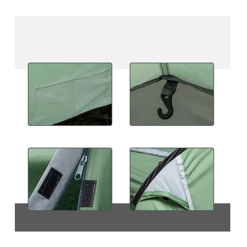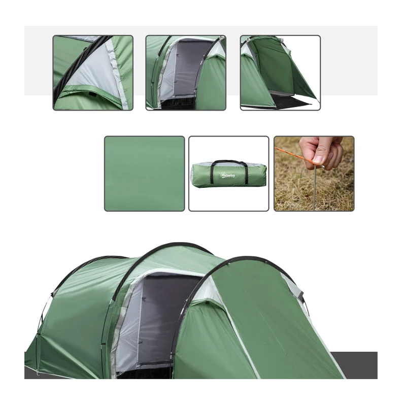 Η σκηνή camping, από την εταιρία Outsunny, είναι ευρύχωρη και μπορεί να φιλοξενήσει 3-4 άτομα. Ο χώρος ύπνου διαχωρίζεται, ενώ ο μεγάλος προθάλαμος προσφέρει επιπλέον προστασία για να καθίσετε έξω από τη σκηνή ή για να διατηρήσετε προστατευμένα όλα όσα αφήνετε έξω από τον χώρο ύπνου. Ο προθάλαμος είναι εξοπλισμένος με 2 πόρτες, για εύκολη πρόσβαση. Το εσωτερικό άγκιστρο στην κορυφή, σας επιτρέπει να έχετε πρακτική υποστήριξη για το φως, ενώ οι 4 εσωτερικές τσέπες σας επιτρέπουν να διατηρείτε τα μικρά αντικείμενά σας σε τάξη.
