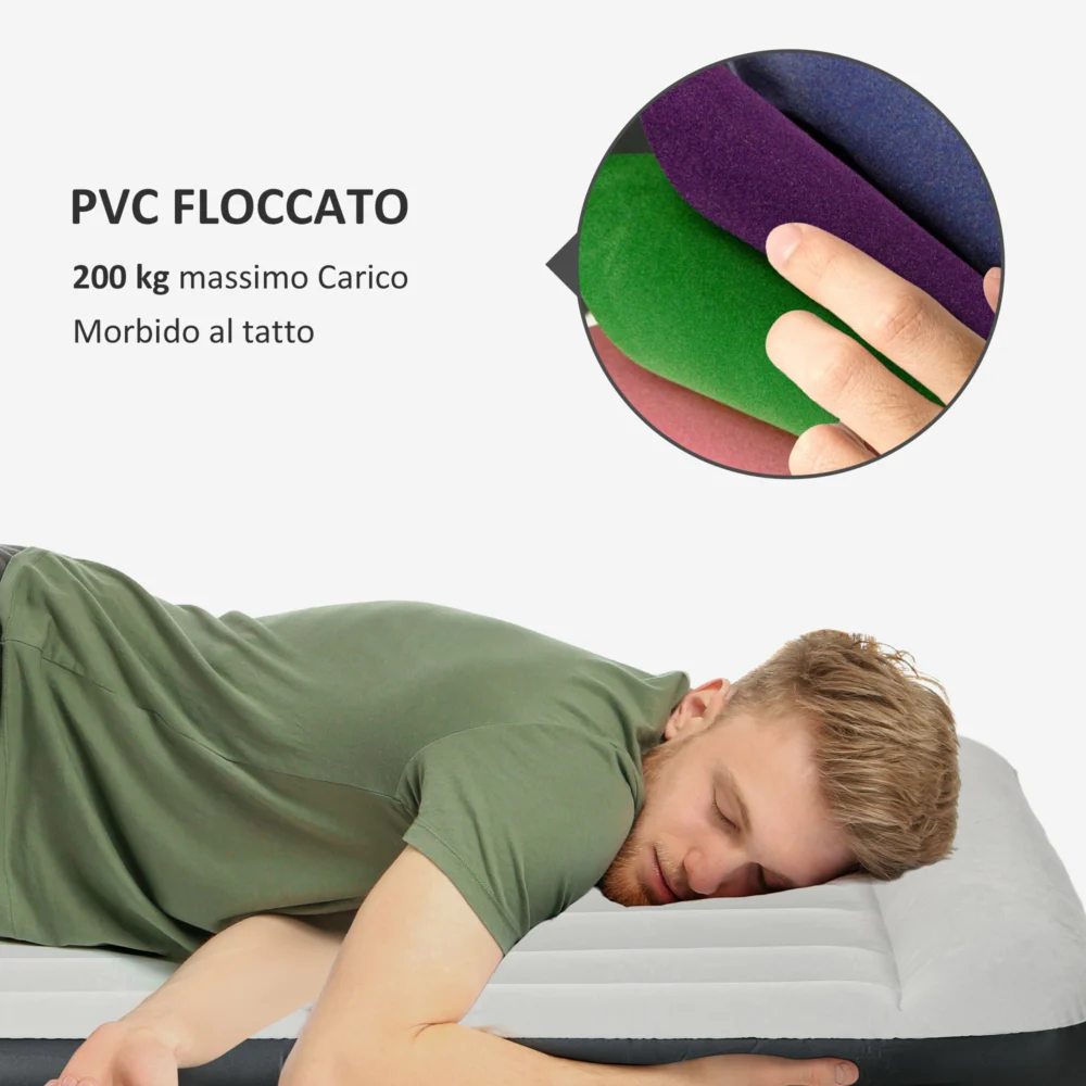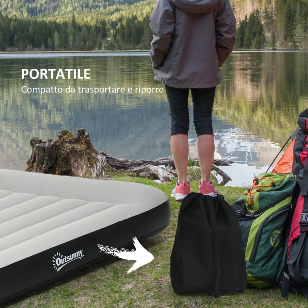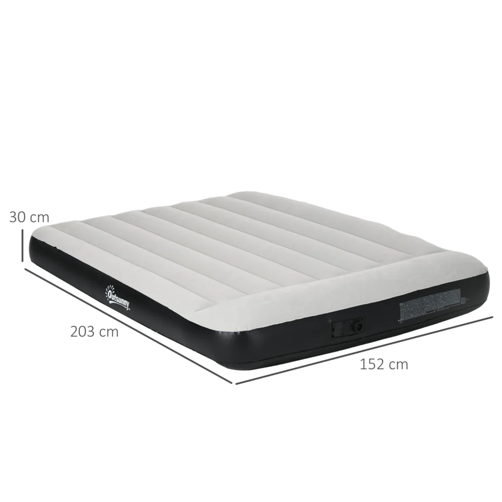 Φουσκωτό Διπλό Στρώμα με Ενσωματωμένο Μαξιλάρι, Αντλία και Τσάντα, 152x203x30cm, Γκρι A20-366V90LG