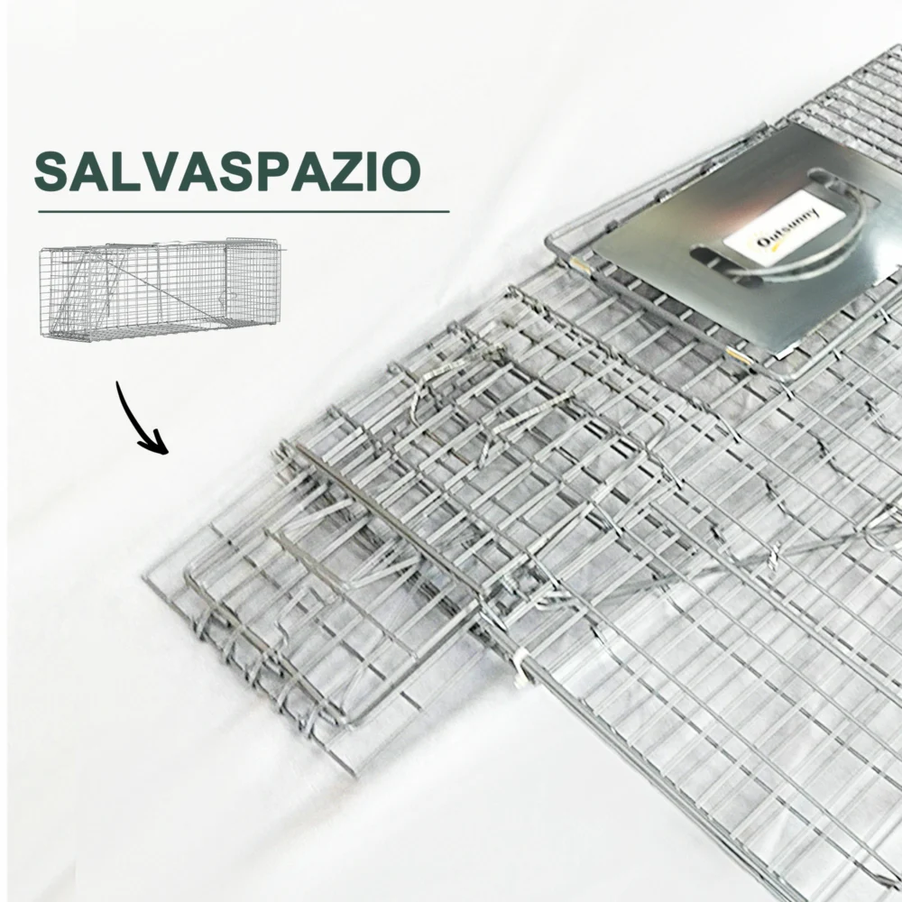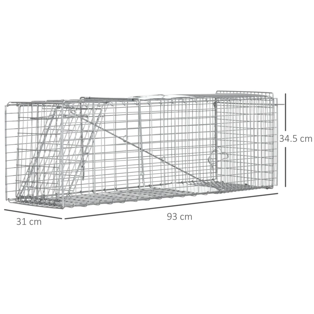 Πτυσσόμενη Μεταλλική Παγίδα – Κλουβί Ζώων με 2 Πόρτες 93 x 31 x 34.5 cm Outsunny AB0-018V02SR