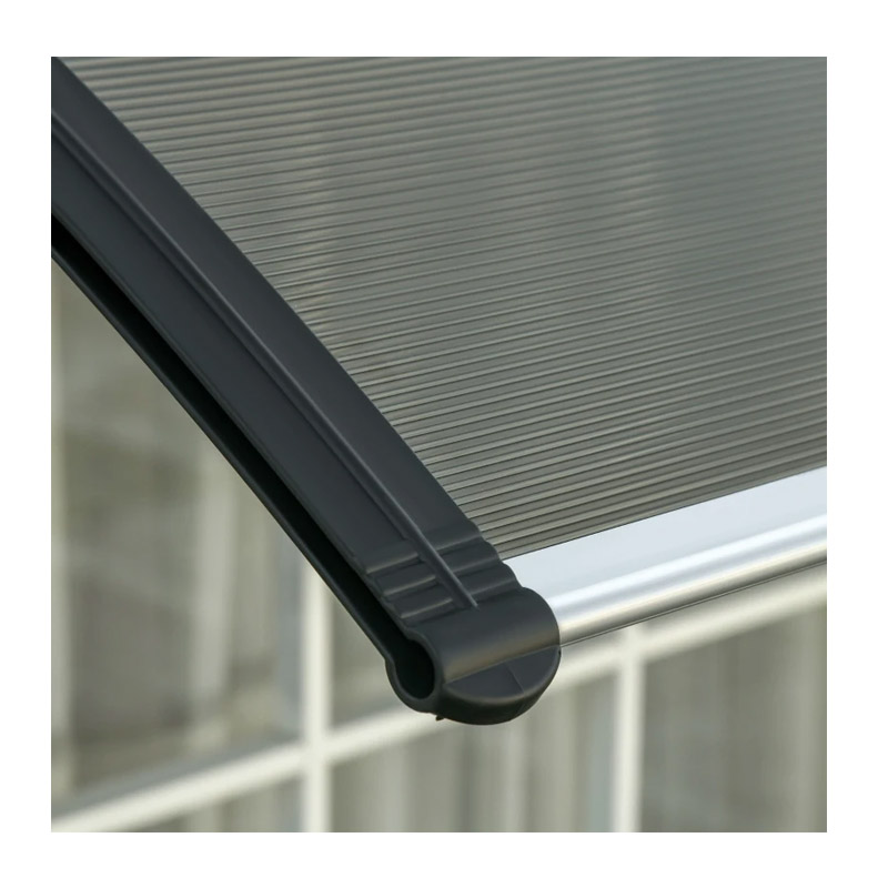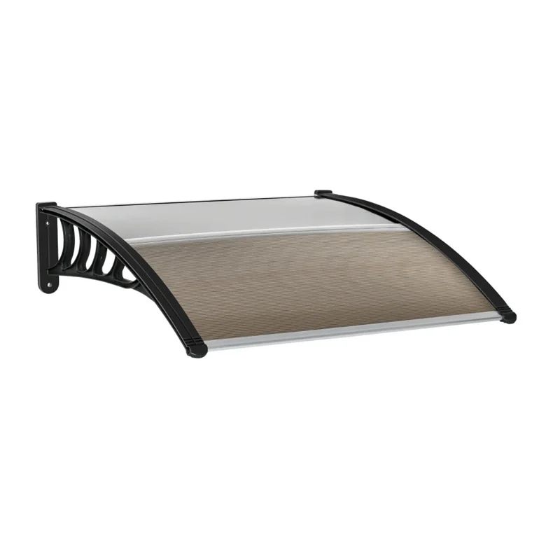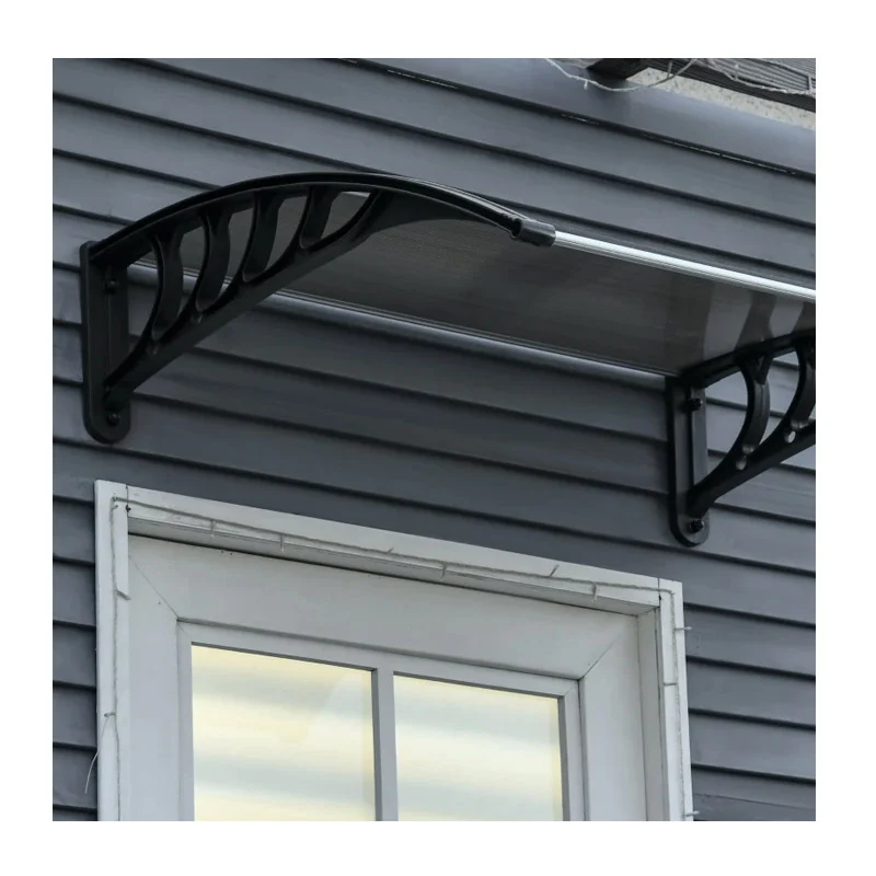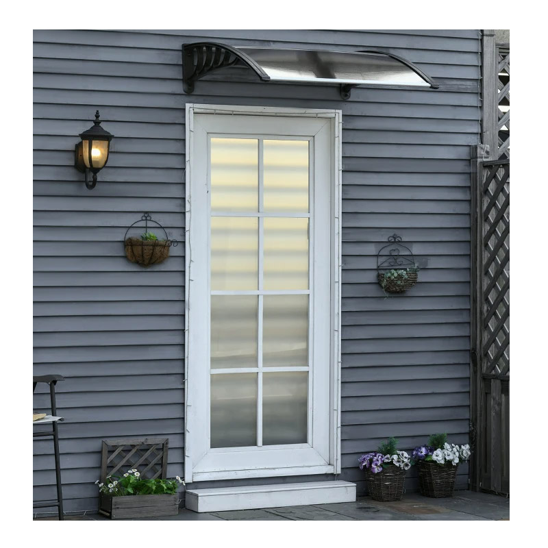 Το κιόσκι – τέντα πόρτας εισόδου, από την εταιρία Outsunny, διαθέτει πλαστικούς βραχίονες και μπάρες αλουμινίου που συνδέουν τα δύο άκρα. Το πολυκαρμπονικό καφέ πάνελ καλυμμένο με επίστρωση ανθεκτική στην υπεριώδη ακτινοβολία, παρέχει καταφύγιο από τον ήλιο και τις ακτίνες UV.