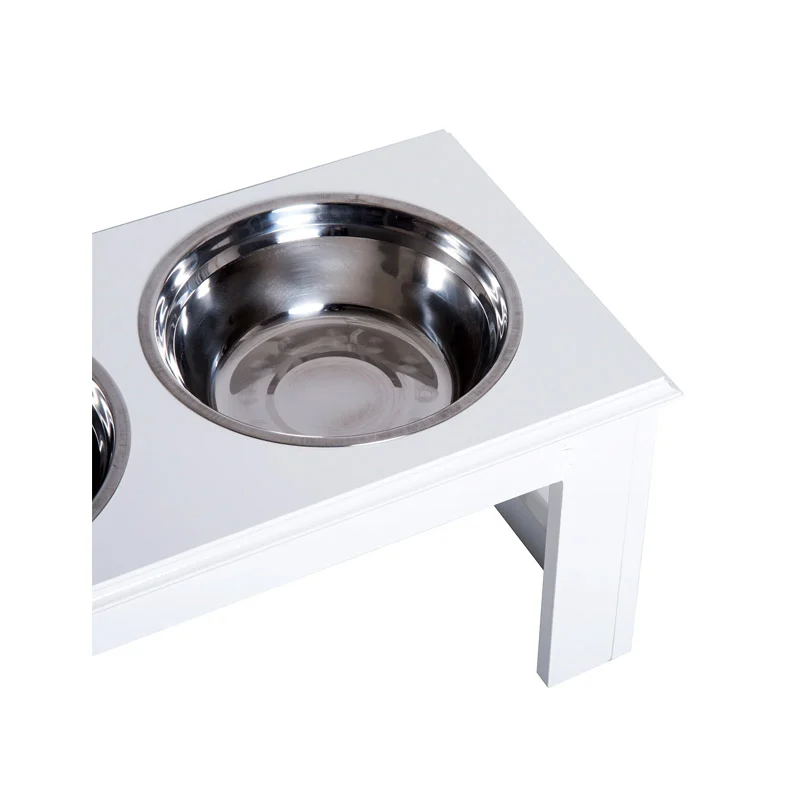 Σετ Ανοξείδωτα Μπολ Γεύματος με Ξύλινη Βάση για Κατοικίδια Χρώματος Λευκό PawHut D08-015WT
