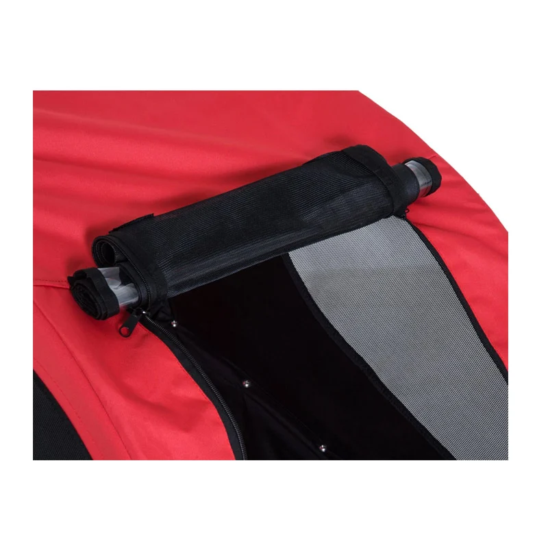 Διαθέτει αφαιρούμενο διαφανές πλαστικό κάλυμμα για μπροστινή πόρτα, το οποίο παρέχει προστασία του κατοικίδιου από τις καιρικές συνθήκες. Περιλαμβάνει ρυθμιζόμενο άγκιστρο λουριού μέσα στο τρέιλερ για την ασφαλή προστασία του κατοικίδιου, πλέγμα με φερμουάρ μπροστά και πίσω πόρτα για γρήγορη και εύκολη φόρτωση, μεγάλους τροχούς πεπιεσμένου αέρα 20″ με πορτοκαλί ανακλαστήρες, σημαία ασφαλείας για την ορατότητά του, καθώς και 2 ανακλαστήρες στο πίσω μέρος για μεγαλύτερη ασφάλεια.
