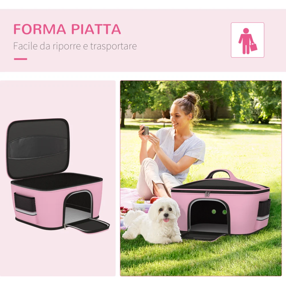 Τσάντα μεταφοράς PawHut για σκύλους και γάτες με 2 πόρτες με φερμουάρ, 50x35x36 cm, ροζ D00-150V00PK